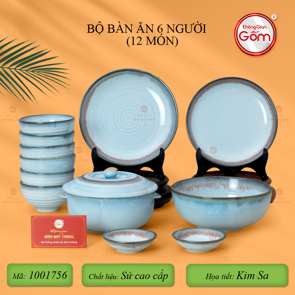 - Tên sản phẩm: Bộ Bàn Ăn 6 Người (12 món) Men Biển Xanh Kim Sa