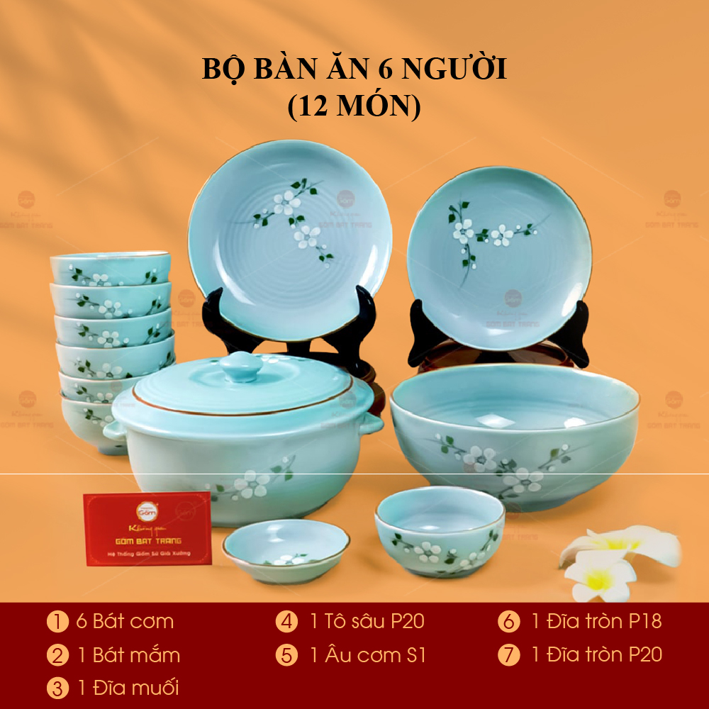 Xem thêm: Bộ Bàn Ăn 10 Người (23 món) Men Ngọc Hoa Đào Trắng | Bộ Bàn Ăn 4 Người (10 món) Men Ngọc Hoa Đào Trắng | Bộ Bàn Ăn 6 Người (12 món) Men Xanh Ngọc Vẽ Bèo