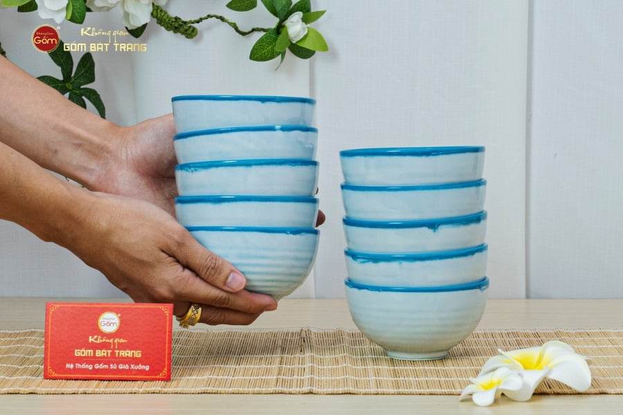 Trong văn hóa ẩm thực Việt, bữa cơm không chỉ đơn thuần là hành động ăn uống mà còn là nơi gắn kết tình thân, lưu giữ những giá trị gia đình. Và trong không gian ấy, chiếc bát cơm luôn là vật dụng trung tâm, gắn liền với từng bữa ăn ấm cúng. Với bàn tay tài hoa của nghệ nhân Bát Tràng, Bộ Bát Cơm Men Biển Xanh Cát Trắng đã ra đời, vừa mang công năng phục vụ bữa ăn, vừa khắc họa vẻ đẹp tinh tế gợi nhớ biển xanh – cát trắng của thiên nhiên. Bộ sản phẩm hiện có nhiều lựa chọn tiện lợi: bộ 4 chén, 6 chén và 10 chén, phù hợp cho từng quy mô gia đình.