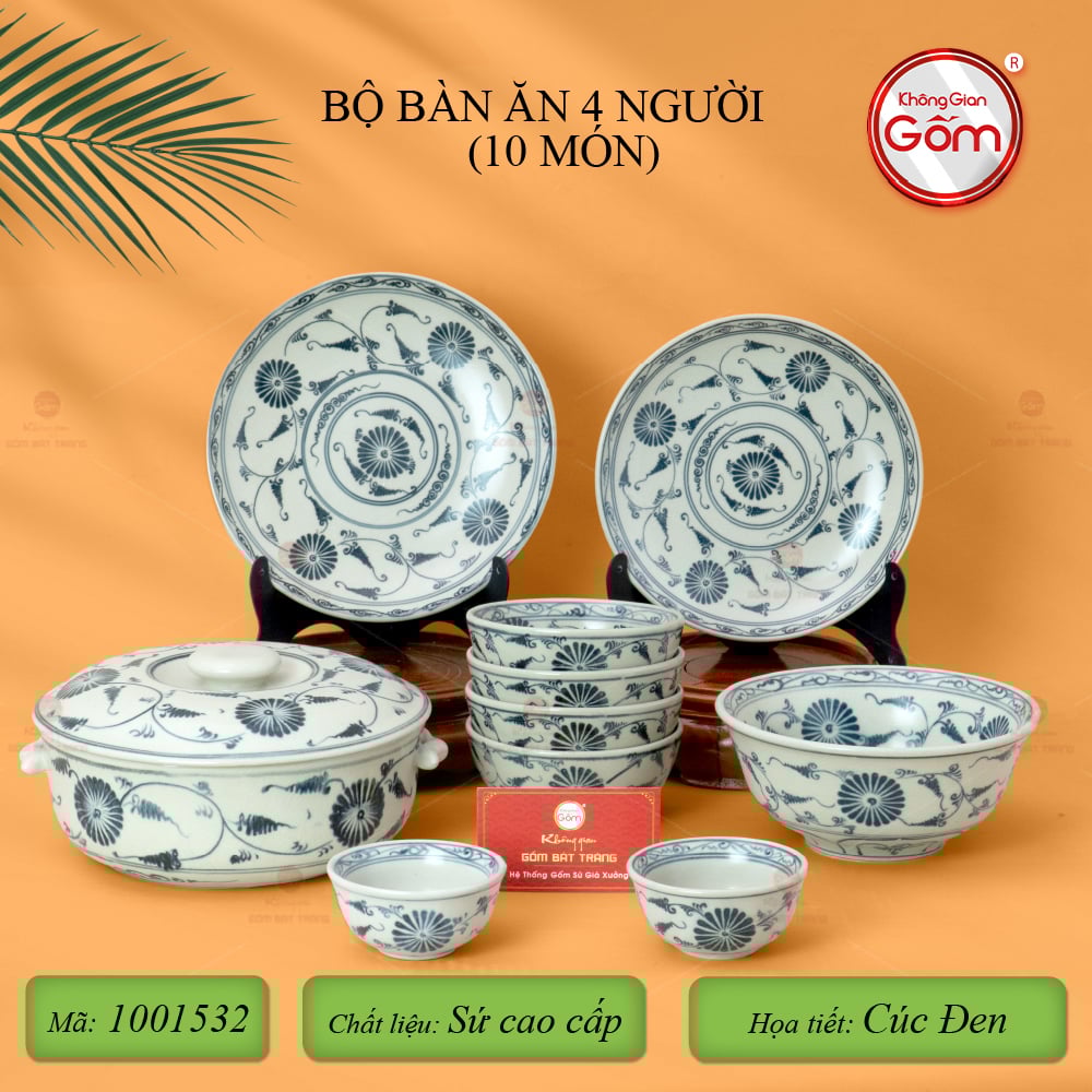 - Tên sản phẩm: Bộ Bát Đĩa Bát Tràng Men Rạn Vẽ Cúc Đen