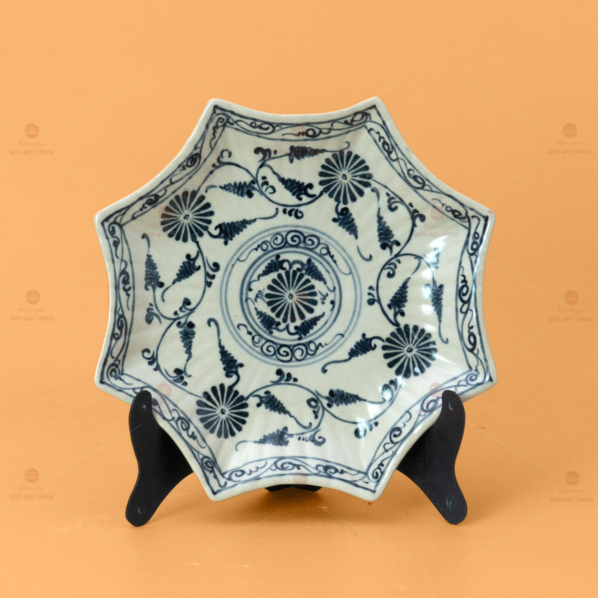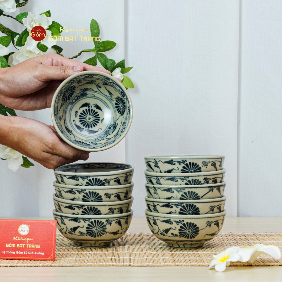 Bộ bát đĩa men rạn với hoa văn cúc đen không chỉ mang tính thẩm mỹ mà còn chứa đựng ý nghĩa văn hóa sâu sắc. Hoa cúc – biểu tượng của sự trường thọ và phúc lộc – được cách điệu tinh xảo, thể hiện tài hoa và tâm huyết của các nghệ nhân làng gốm Bát Tràng.