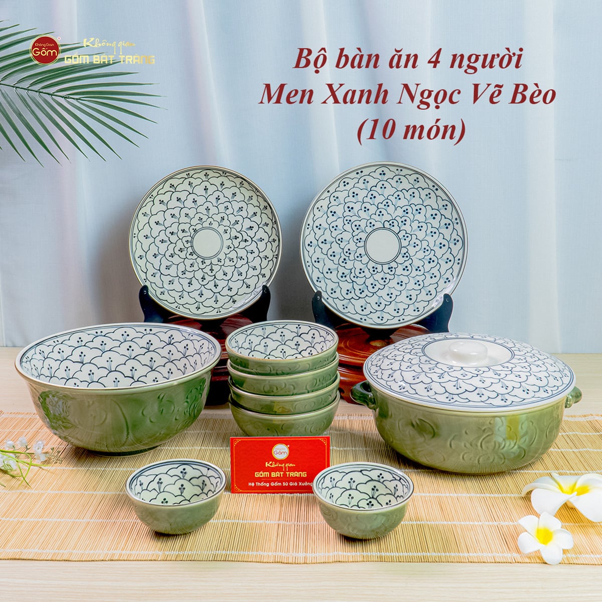 - Tên sản phẩm: Bộ Bát Đĩa Bát Tràng Men Xanh Ngọc Vẽ Bèo