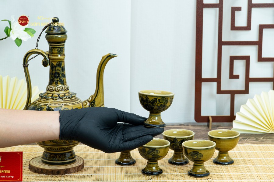- Đặc tính: Chất liệu an toàn, lành tính, sử dụng được nhiều lần. Chịu nhiệt tốt, giữ được nồng độ rượu không bị bay hơi. Mặt men sáng bóng, cứng chắc, giữ sản phẩm luôn mới sau thời gian dài sử dụng.