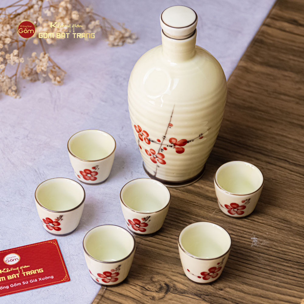 Bộ Nậm Rượu Hoa Đào Đỏ