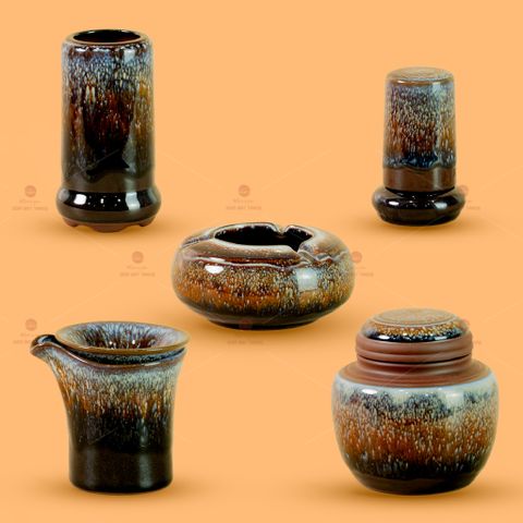 Bộ Phụ Kiện Trà Đại Cẩm Thạch Men Hỏa Biến