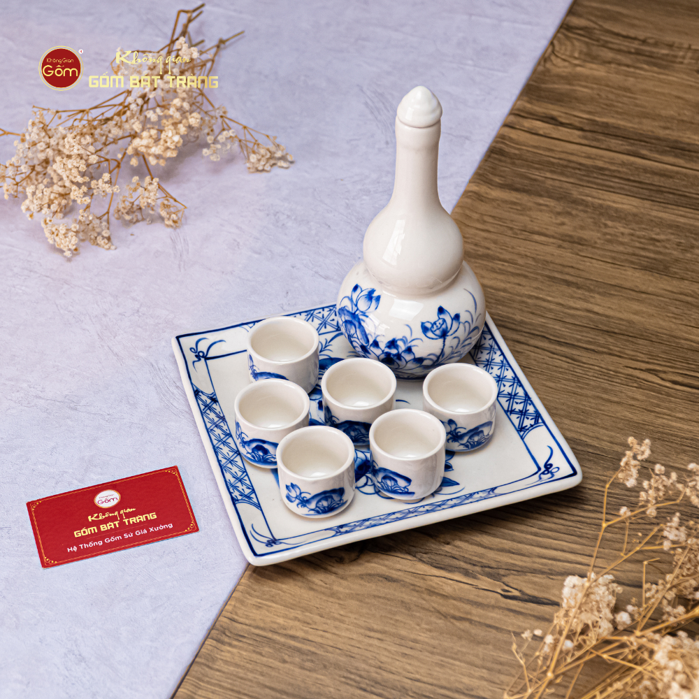 - Số lượng: 1 nậm rượu, 6 chén, 1 đĩa vuông
