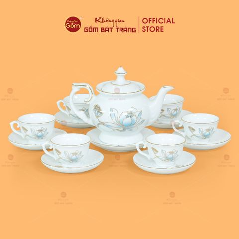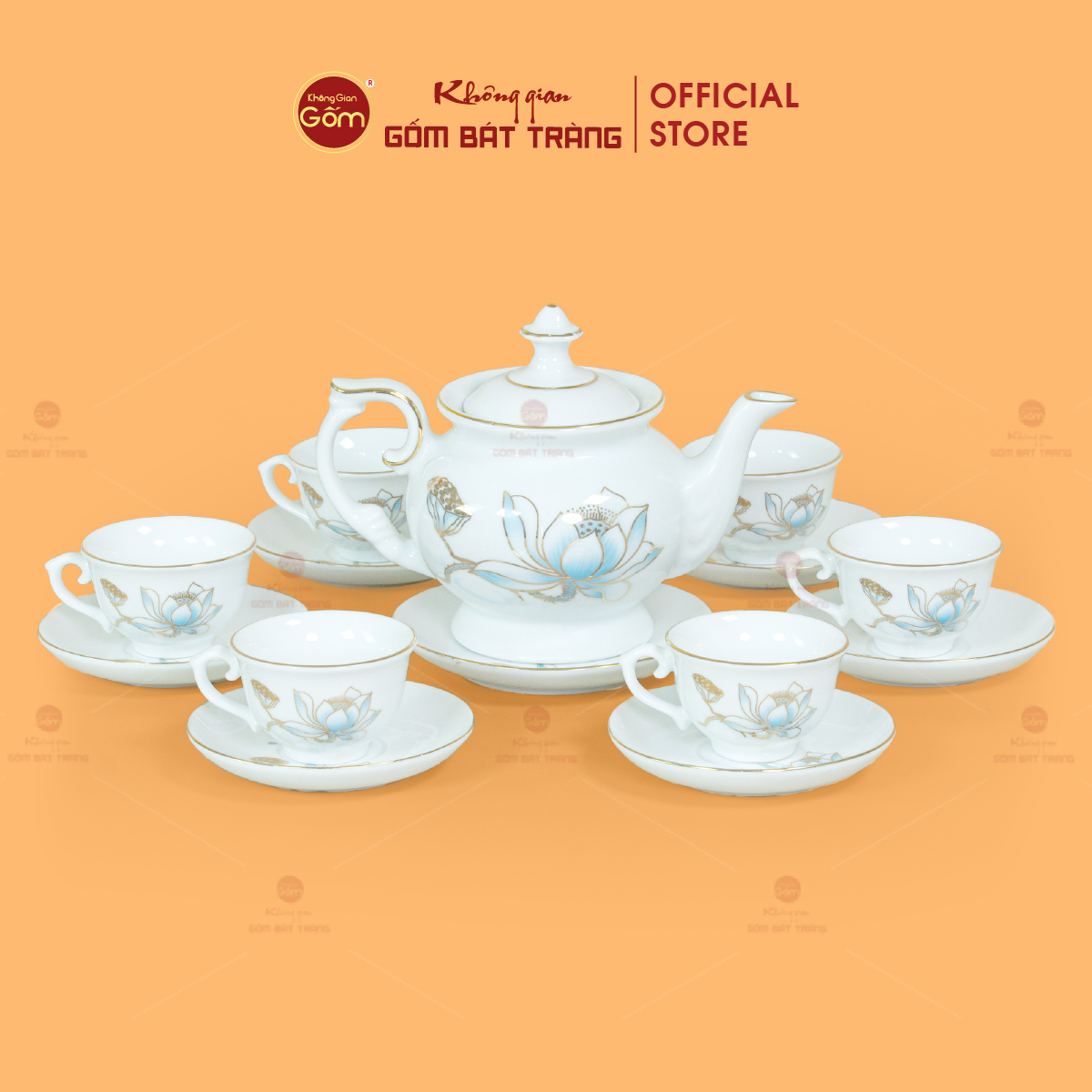 Bộ Trà Đài Các Hoa Sen Xanh Vẽ Vàng