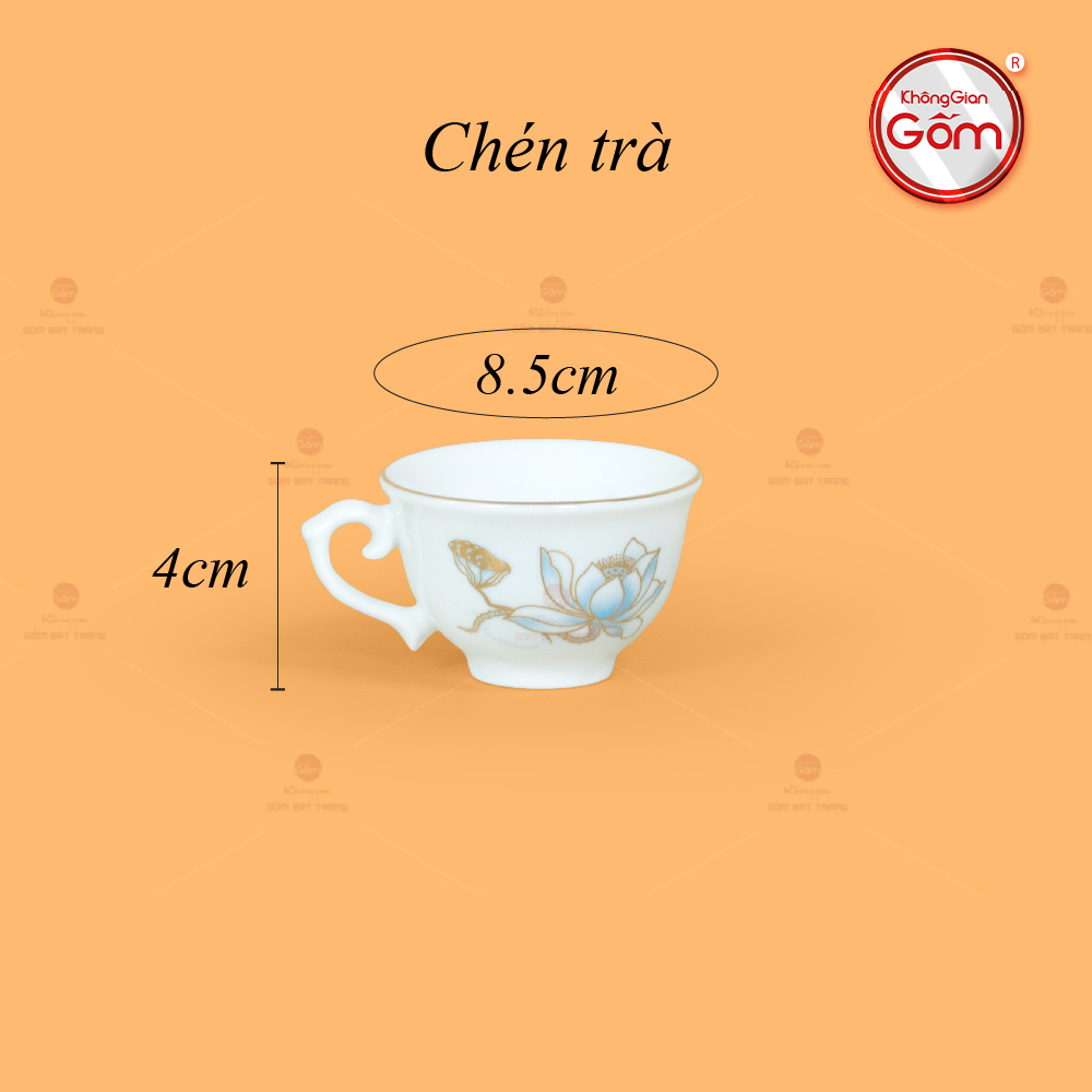 - Tên sản phẩm: Bộ Trà Đài Các Hoa Sen Xanh Vẽ Vàng