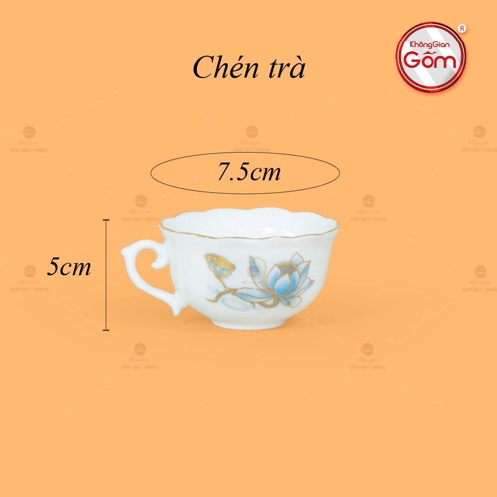 - Tên sản phẩm: Bộ Trà Mẫu Đơn Ly Lượn Hoa Sen Xanh Vẽ Vàng