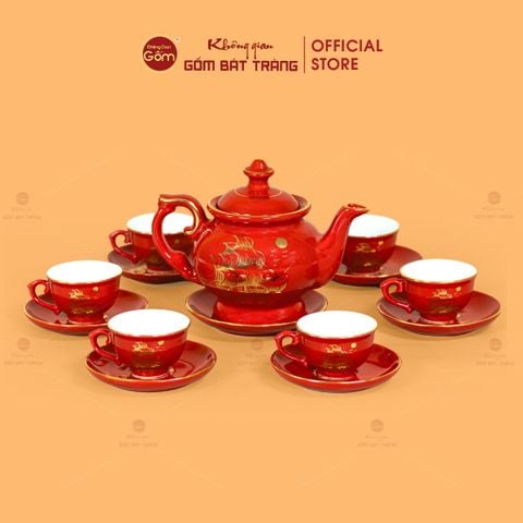 Bộ Trà Men Đỏ Đài Các Thuận Buồm Vẽ Vàng