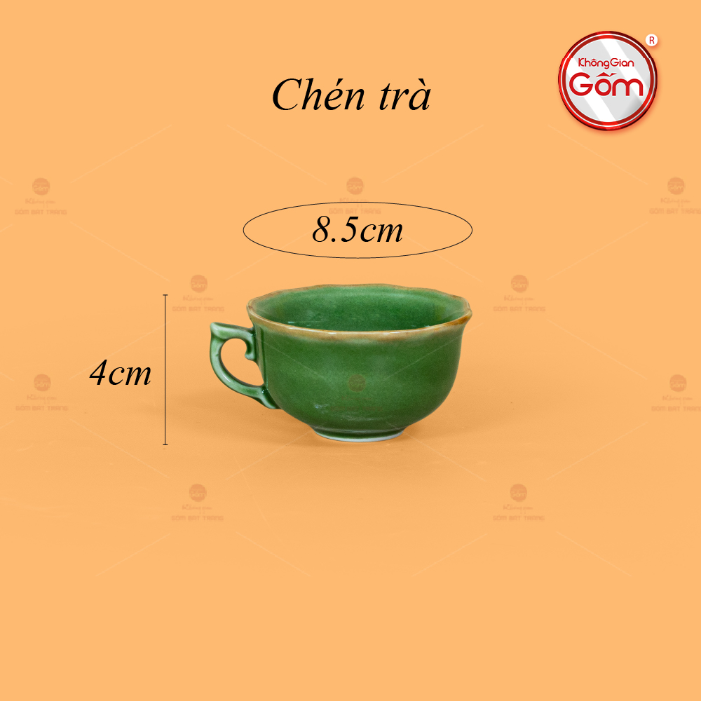 Chén trà (8,5cm x 4cm): Vành chén mảnh, dễ cảm nhận vị trà; độ dày vừa phải giữ nhiệt mà không gây bỏng tay.