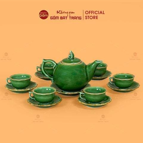 Bộ Trà Men Hỏa Biến Xanh Mẫu Đơn đến từ làng gốm Bát Tràng là sự kết hợp hài hòa giữa truyền thống và nghệ thuật hiện đại – nơi sắc xanh hỏa biến tự nhiên được tạo ra qua quá trình nung lửa khéo léo, mang đến vẻ đẹp mộc mạc nhưng cuốn hút, phản chiếu tinh thần tĩnh tại và thanh nhã của người Việt. Bộ ấm chén có vị trí nhất định trong hệ sinh thái trà cụ và trà đạo Việt. Trong không gian trà đạo Việt, mỗi bộ trà không chỉ là vật dụng pha trà mà còn là một phần tâm hồn của người thưởng thức.
