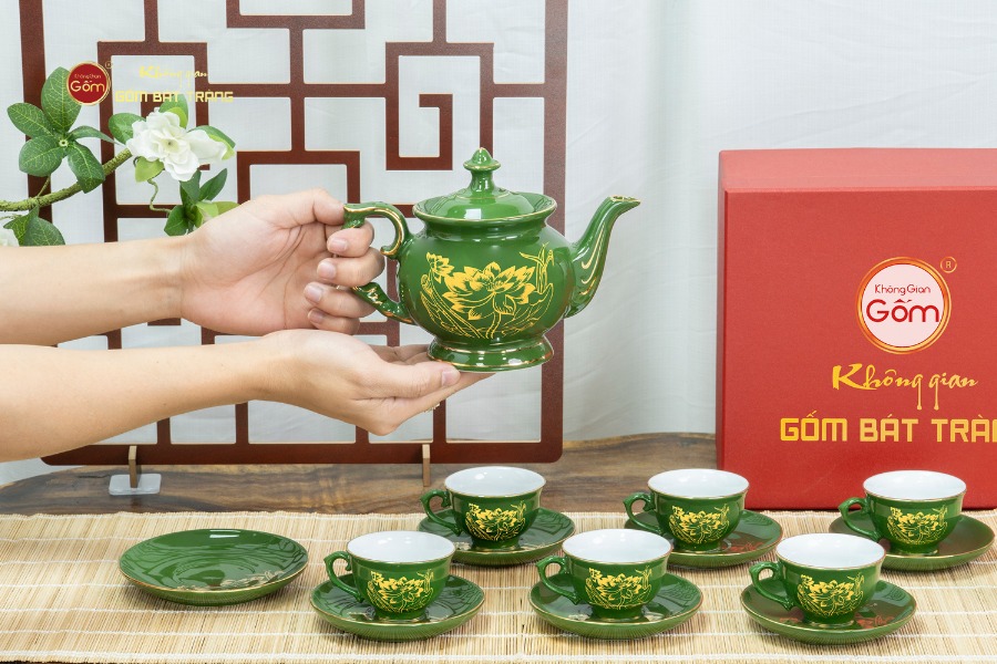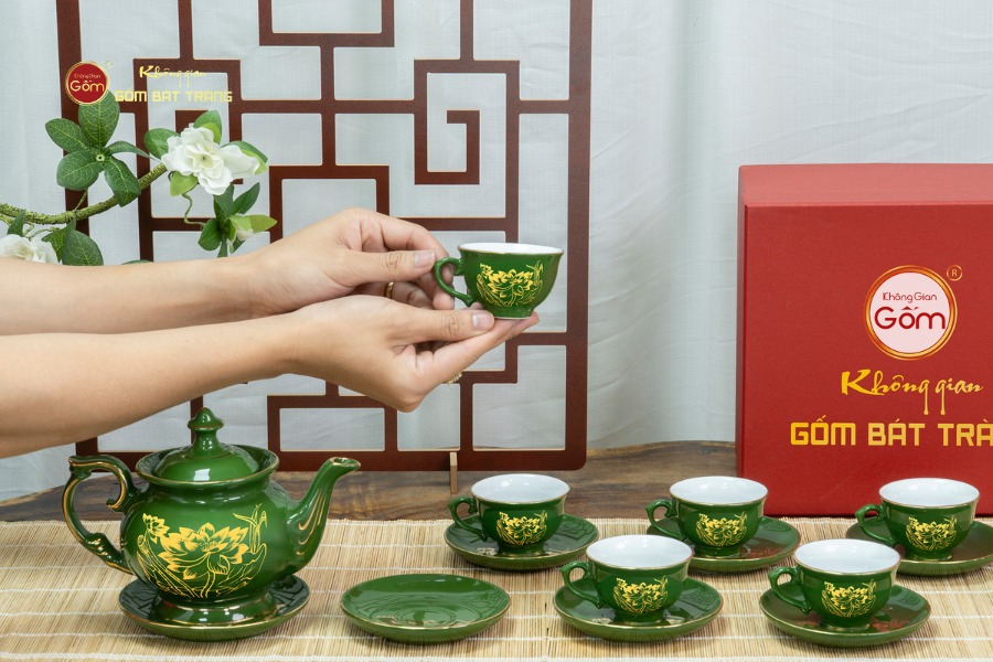 Để sở hữu Bộ Trà Men Lục Đài Các Hoa Sen Vẽ Vàng với chất lượng men sứ Bát Tràng đáng tin cậy và kỹ thuật vẽ vàng thủ công tinh xảo, quý vị nên tìm đến các đơn vị cung cấp gốm sứ uy tín. Không Gian Gốm Bát Tràng là địa chỉ phân phối sản phẩm gốm sứ tin cậy, cam kết về nguồn gốc sản phẩm, quy trình chế tác và chất lượng. Tại đây, quý vị sẽ được tư vấn chi tiết để lựa chọn sản phẩm phù hợp, đảm bảo giá trị thẩm mỹ và giá trị sử dụng.