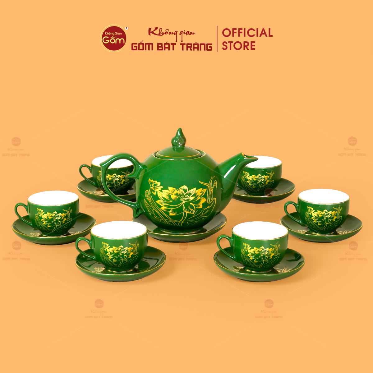 Địa chỉ mua Bộ Trà Men Lục Ngọn Lửa Hoa Sen Vẽ Vàng chất lượng