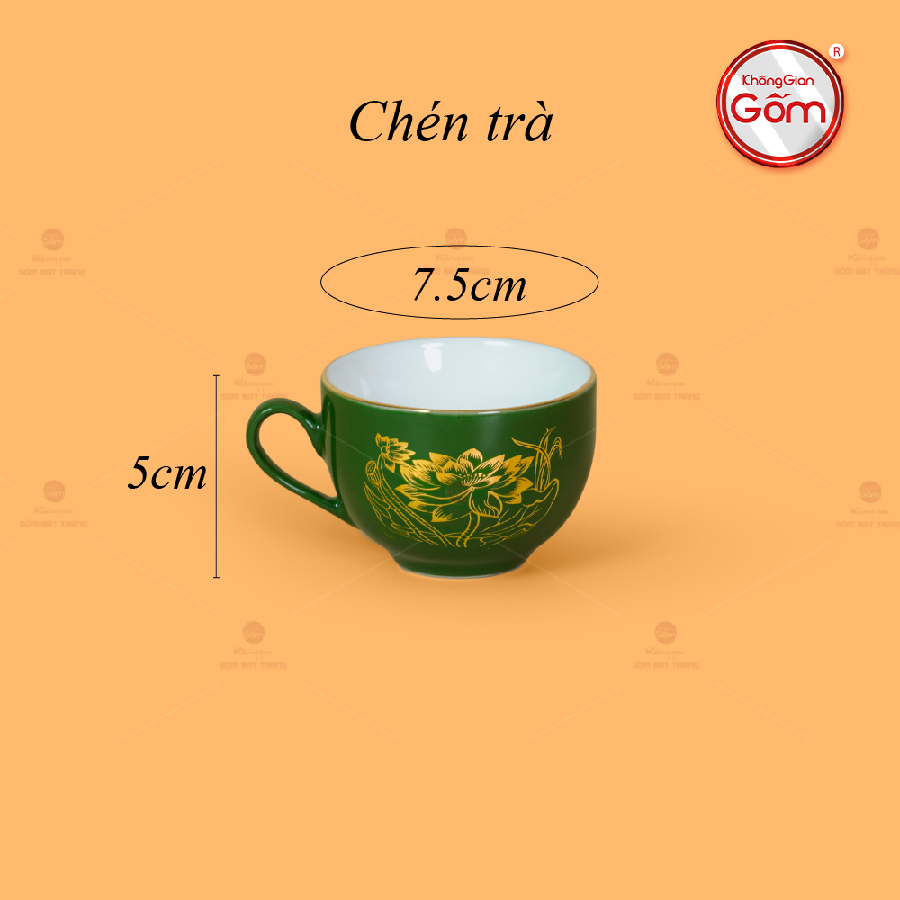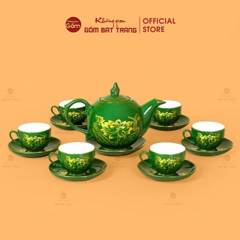 - Tên sản phẩm: Bộ Trà Men Lục Ngọn Lửa Hoa Sen Vẽ Vàng