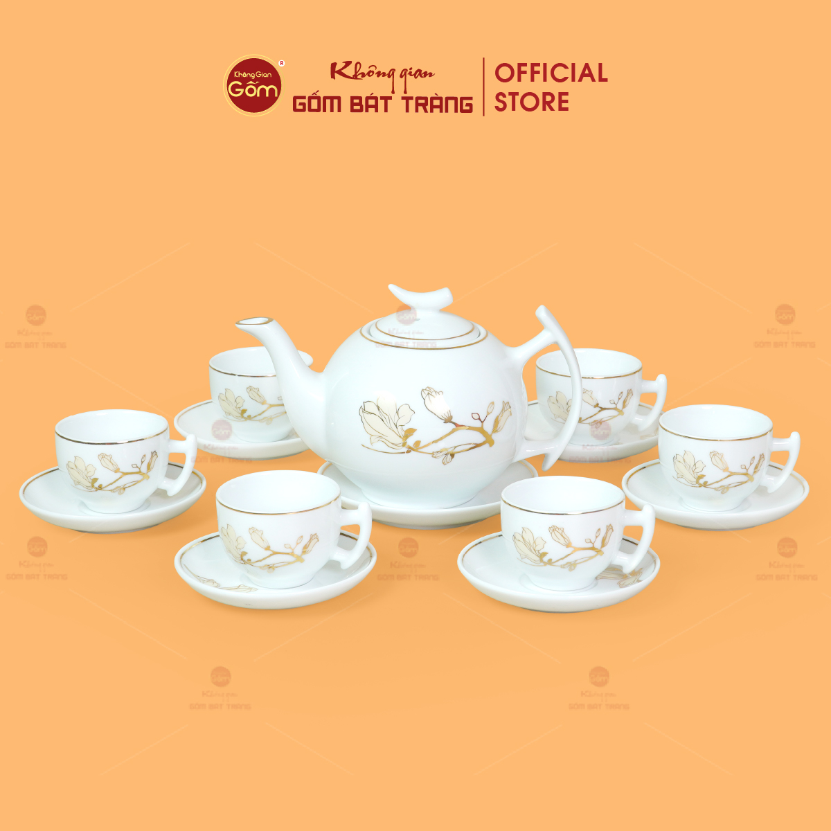 - Tên sản phẩm: Bộ Trà Men Trắng Bưởi Cành Hoa Mộc Lan Vẽ Vàng