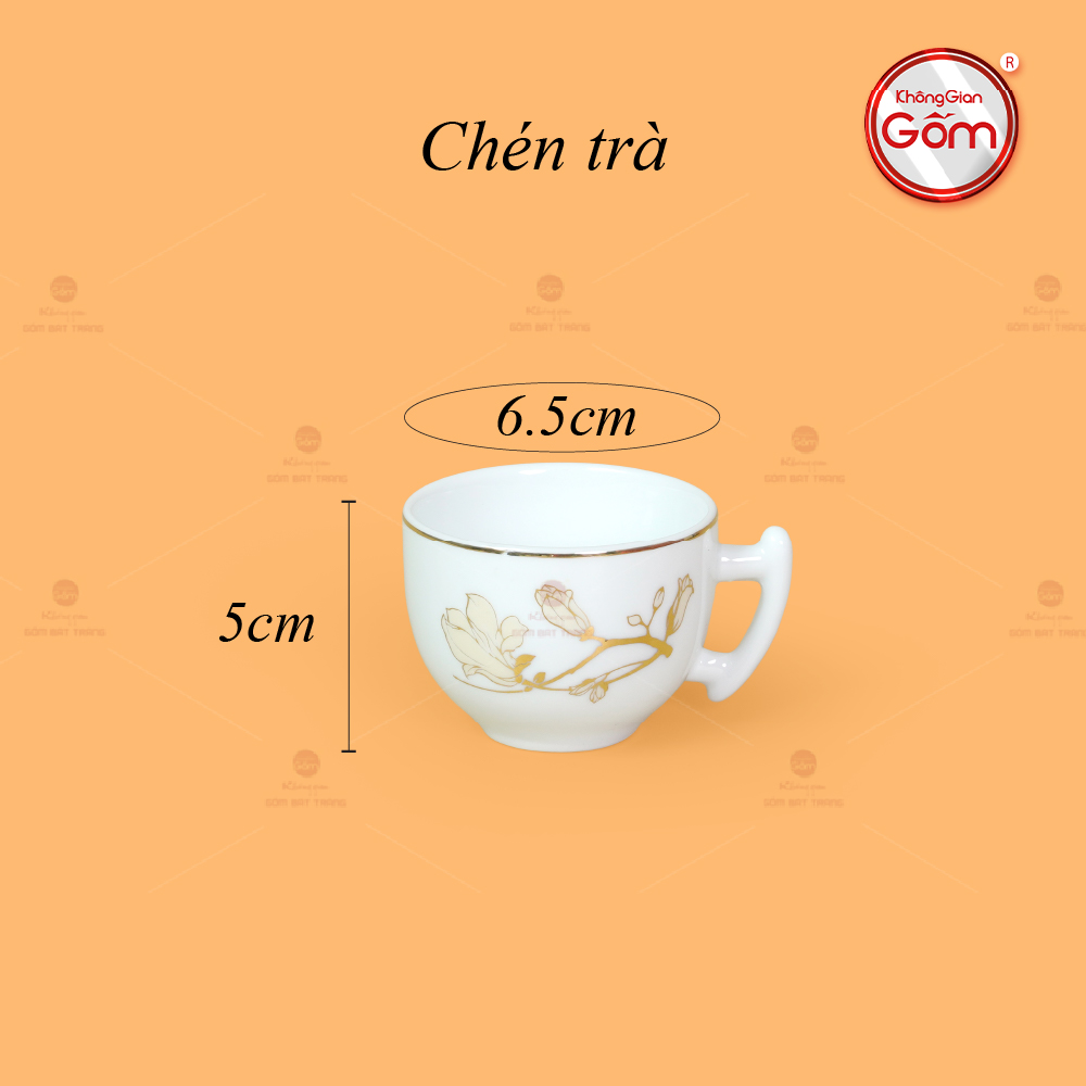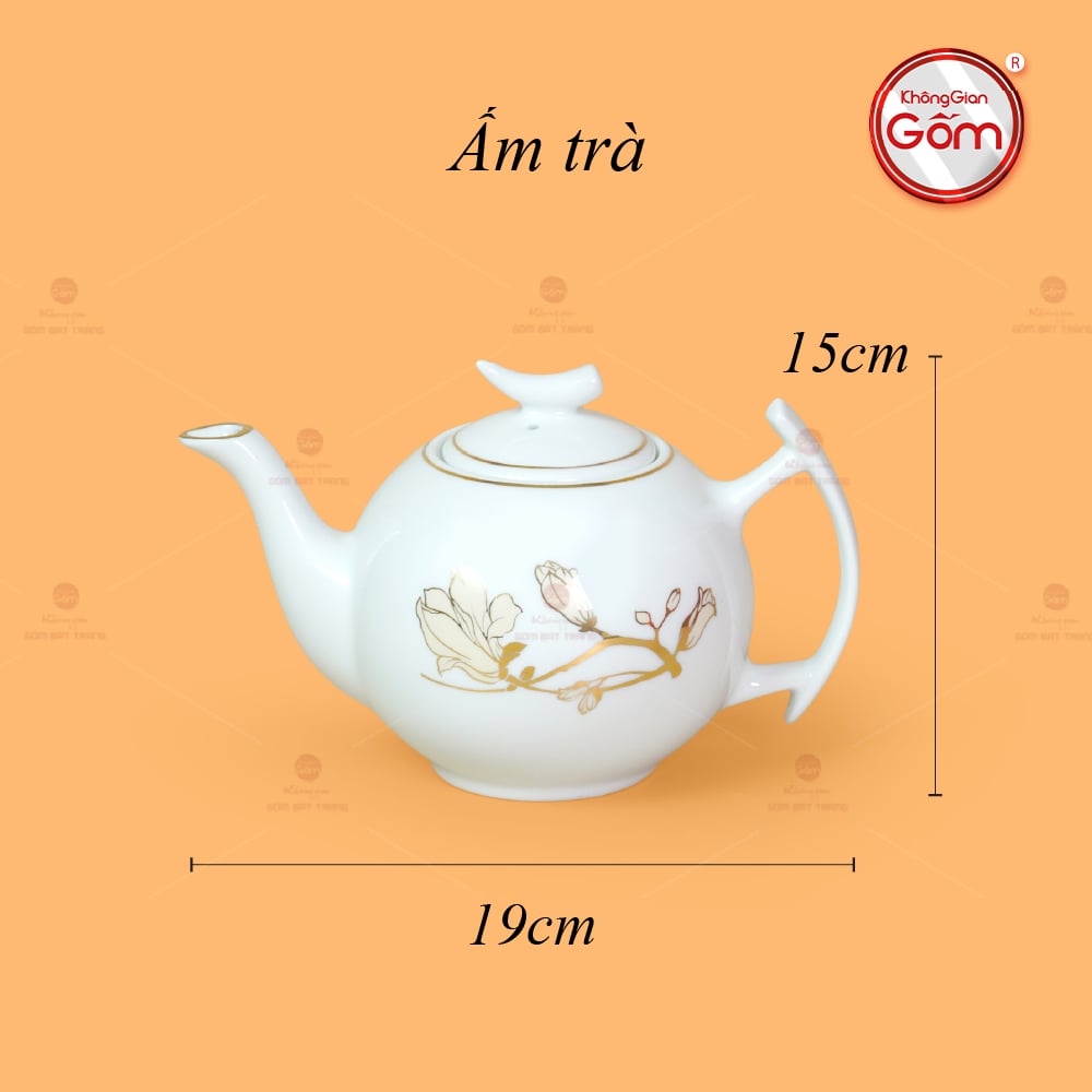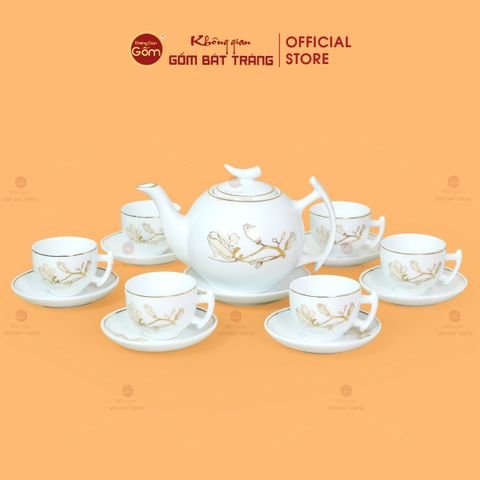 Chất men trắng phối cùng ánh vàng kim tạo nên cảm giác sang trọng nhưng không phô trương, tôn vinh nét đẹp truyền thống trong hơi thở hiện đại. Bộ Trà Men Trắng Bưởi Cành Hoa Mộc Lan Vẽ Vàng gồm 1 ấm trà, 6 chén, 6 đĩa kê và 1 đĩa lót ấm. Mỗi chi tiết đều được chế tác tỉ mỉ, cân xứng về kích thước, vừa vặn cho bàn trà Việt. Đây sẽ là món quà sang trọng và thiết thực cho nhiều đối tượng.