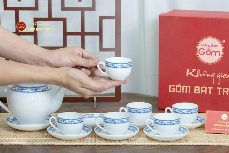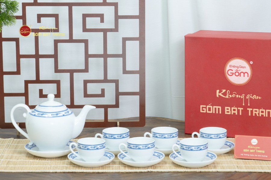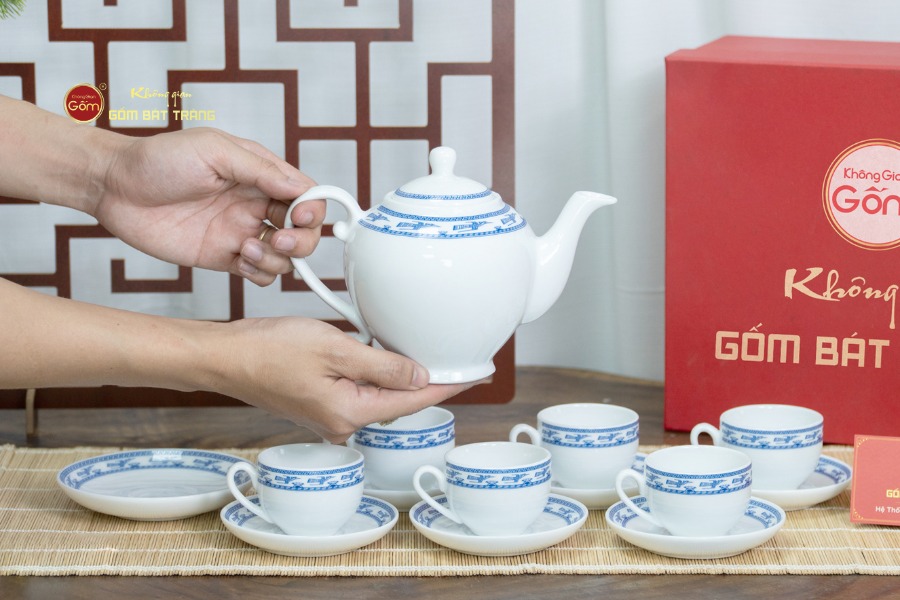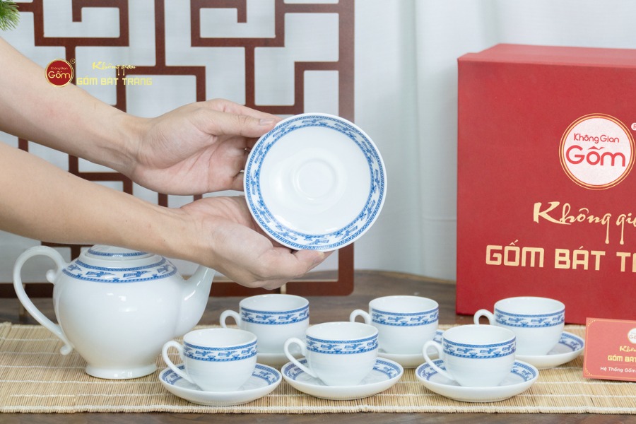 Bộ ấm chén Sứ trắng Camelia Viền Chim Hạc Xanh được phân phối tại các cửa hàng Không Gian Gốm Bát Tràng. Quý khách hàng cũng có thể tham khảo và chọn mua các mẫu ấm chén khác tại các showroom của hệ thống. Chúng tôi chuyên nhận thực hiện các đơn hàng với số lượng lớn như quà tặng doanh nghiệp và quà dành cho nhân viên, đồng thời cung cấp dịch vụ khắc chữ theo yêu cầu. Bằng cách này giúp khách hàng dễ dàng cá nhân hóa sản phẩm gốm sứ cao cấp, tạo nên dấu ấn thương hiệu một cách độc đáo và tinh tế.