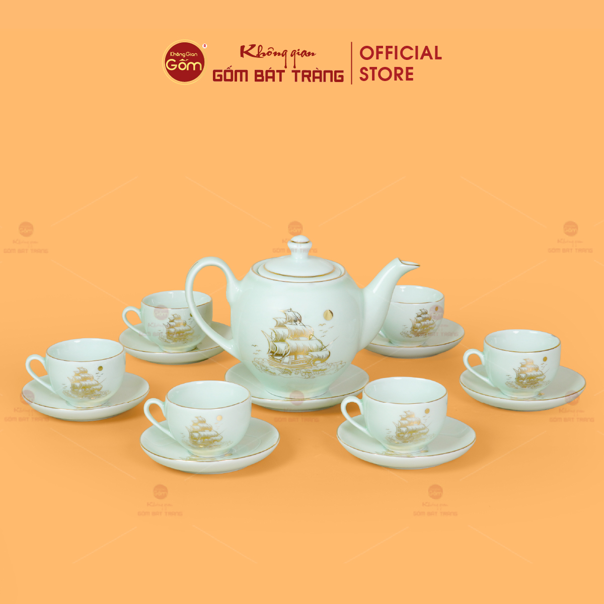 - Tên sản phẩm: Bộ Trà Men Trắng Dáng Minh Long Thuận Buồm Xuôi Gió Vẽ Vàng