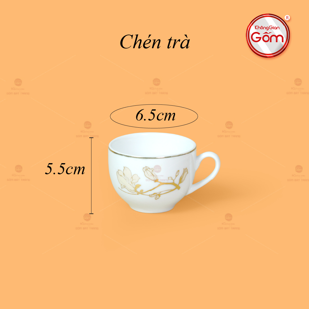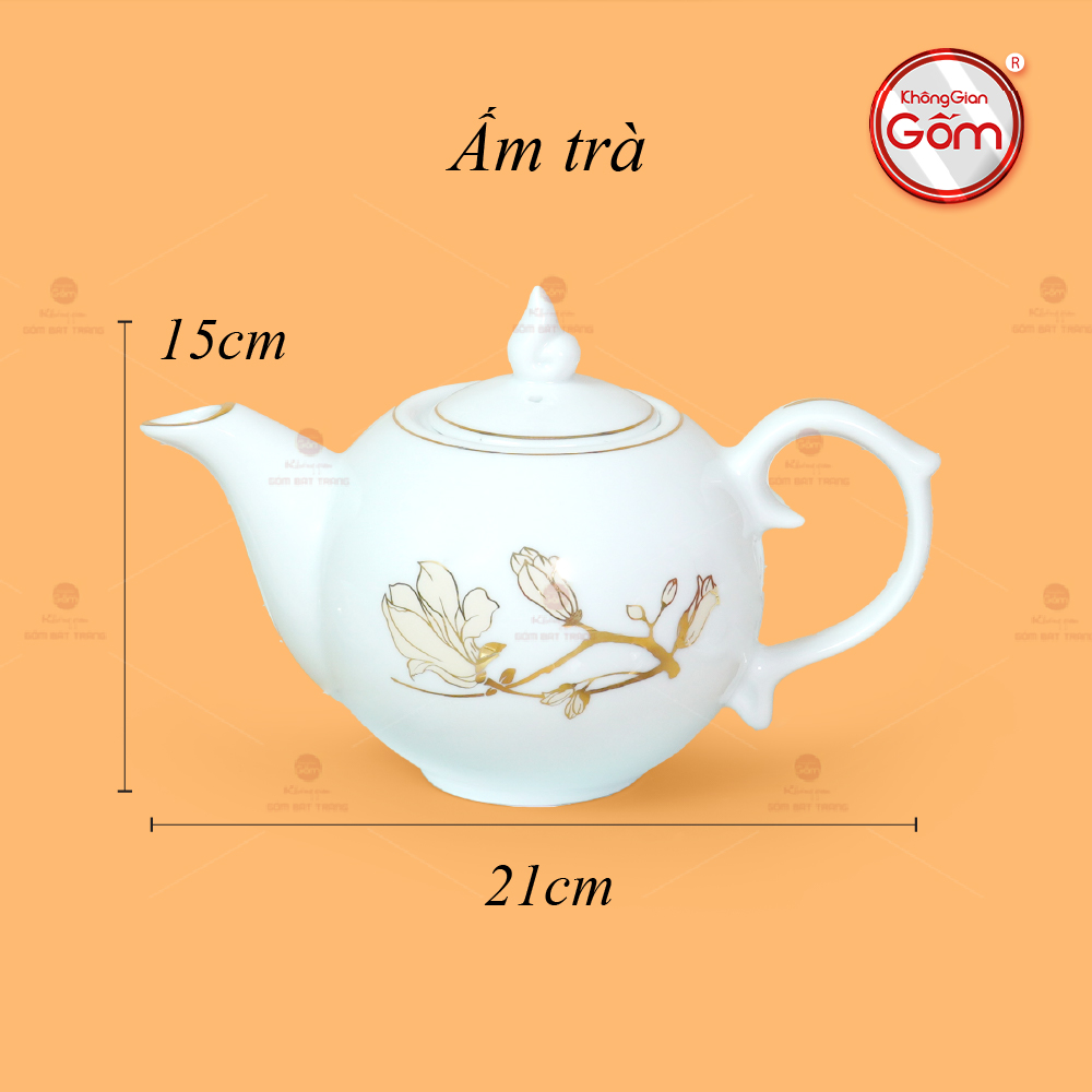 Bộ Trà Men Trắng Ngọn Lửa Hoa Mộc Lan Vẽ Vàng