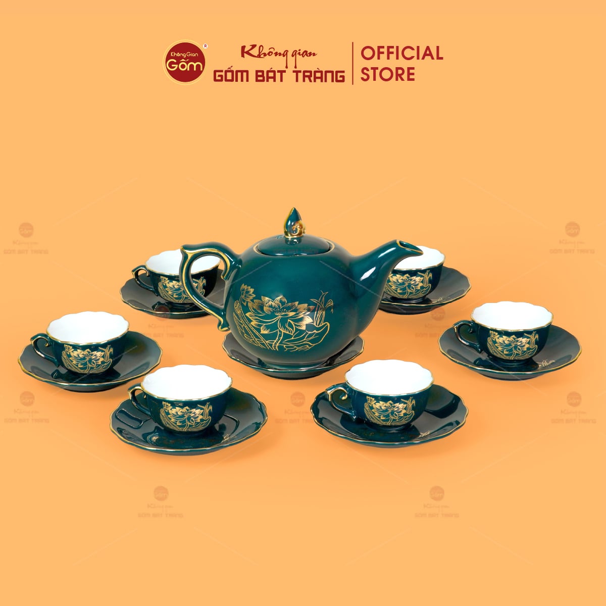 Địa chỉ mua Bộ Trà Men Xanh Lam Mẫu Đơn Hoa Sen Vẽ Vàng uy tín