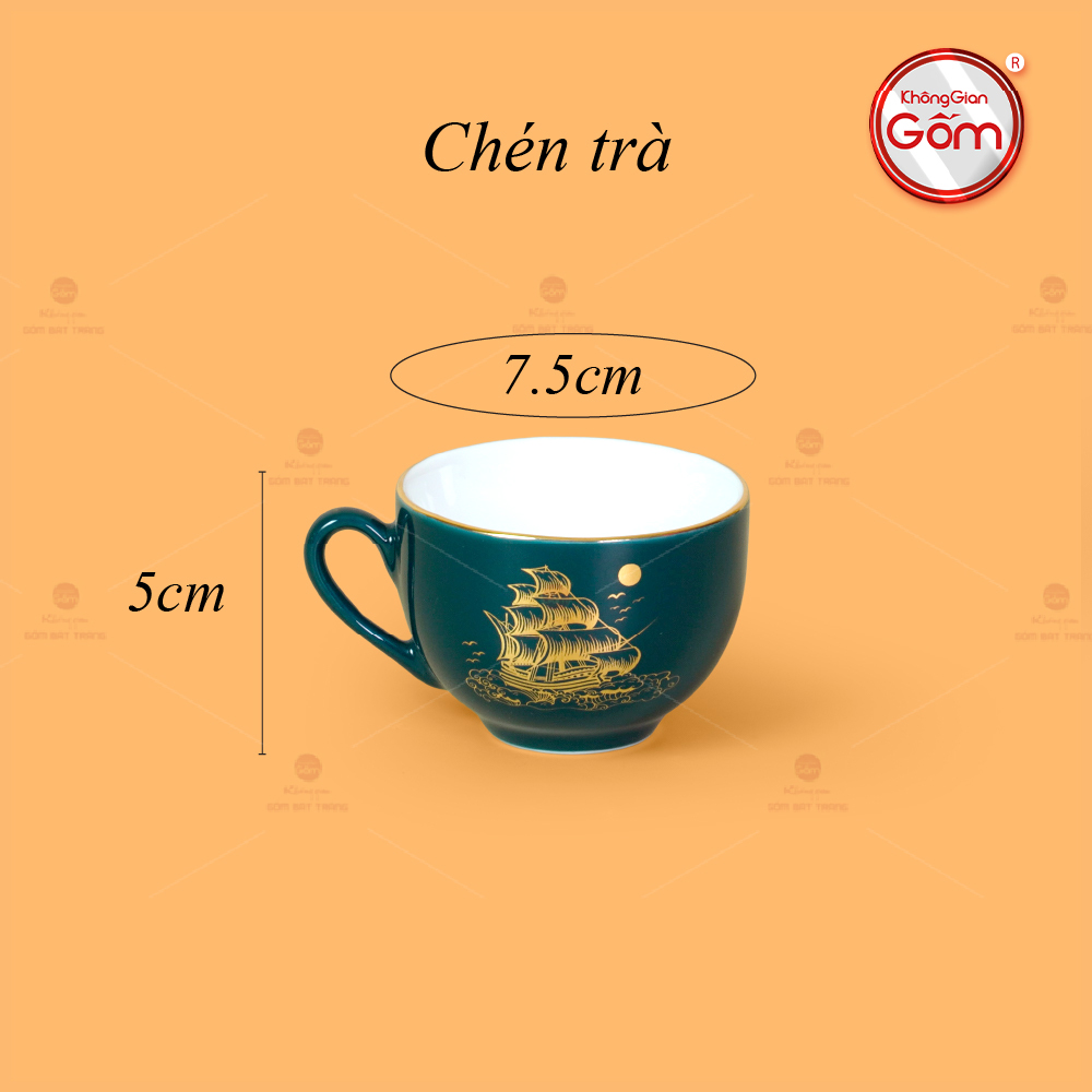 - Tên sản phẩm: Bộ Trà Men Xanh Lam Ngọn Lửa Thuận Buồm Xuôi Gió Vẽ Vàng