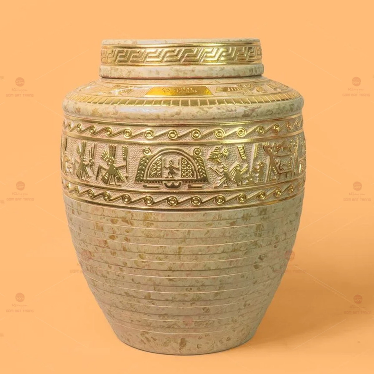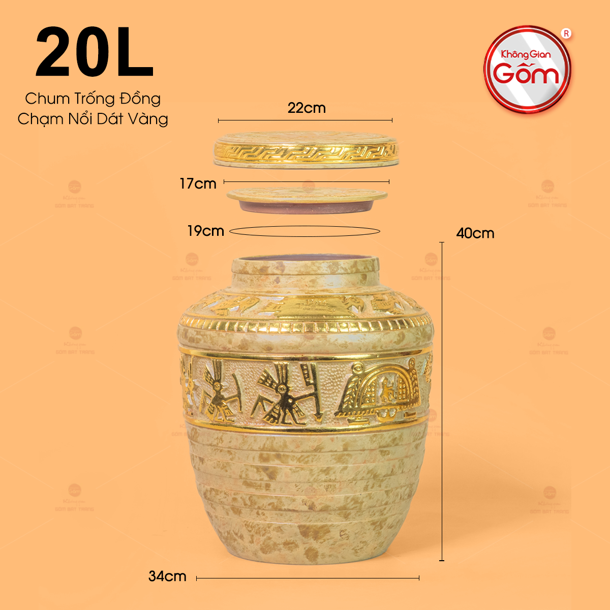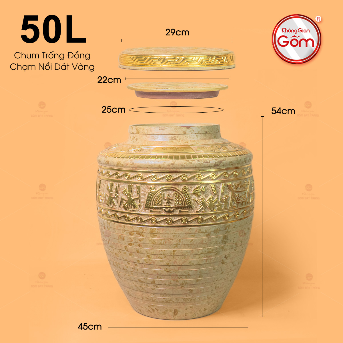 - Tên sản phẩm: Chum Trống Đồng Kim Sa Chạm Nổi Dát Vàng