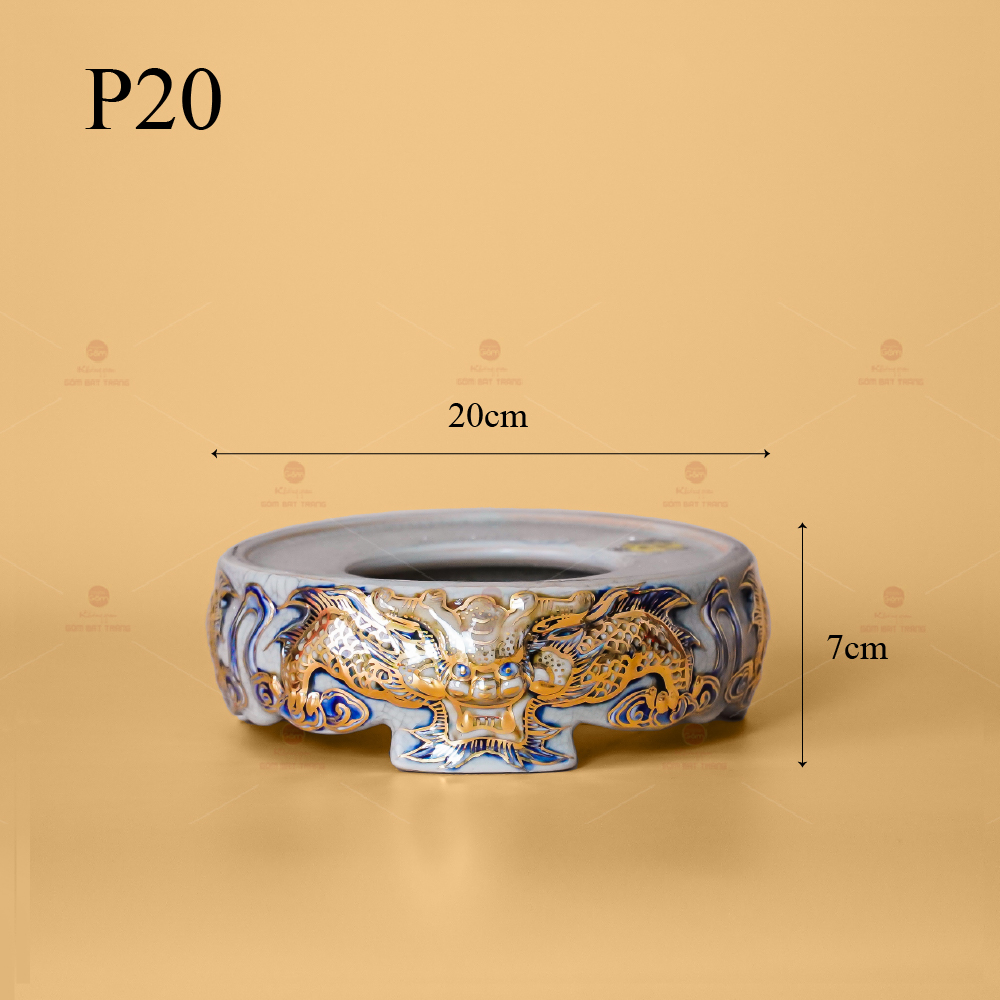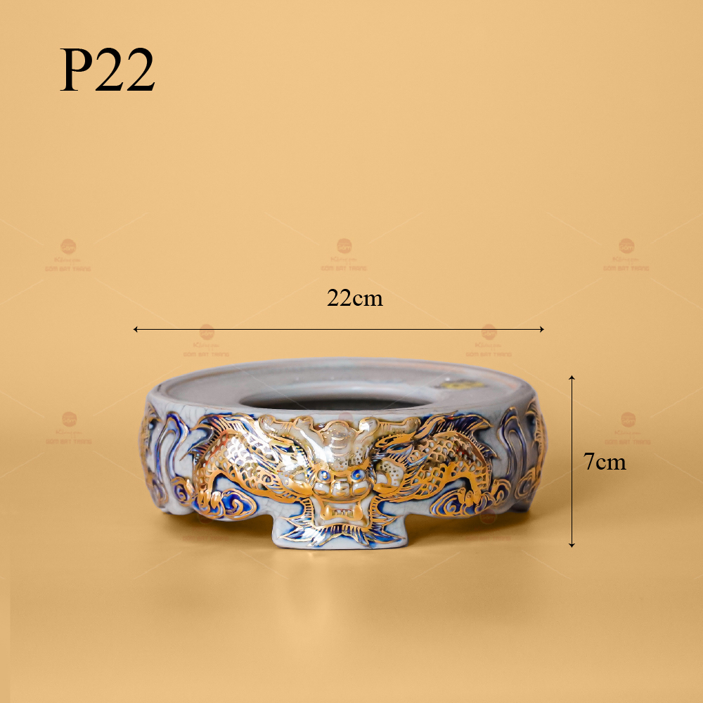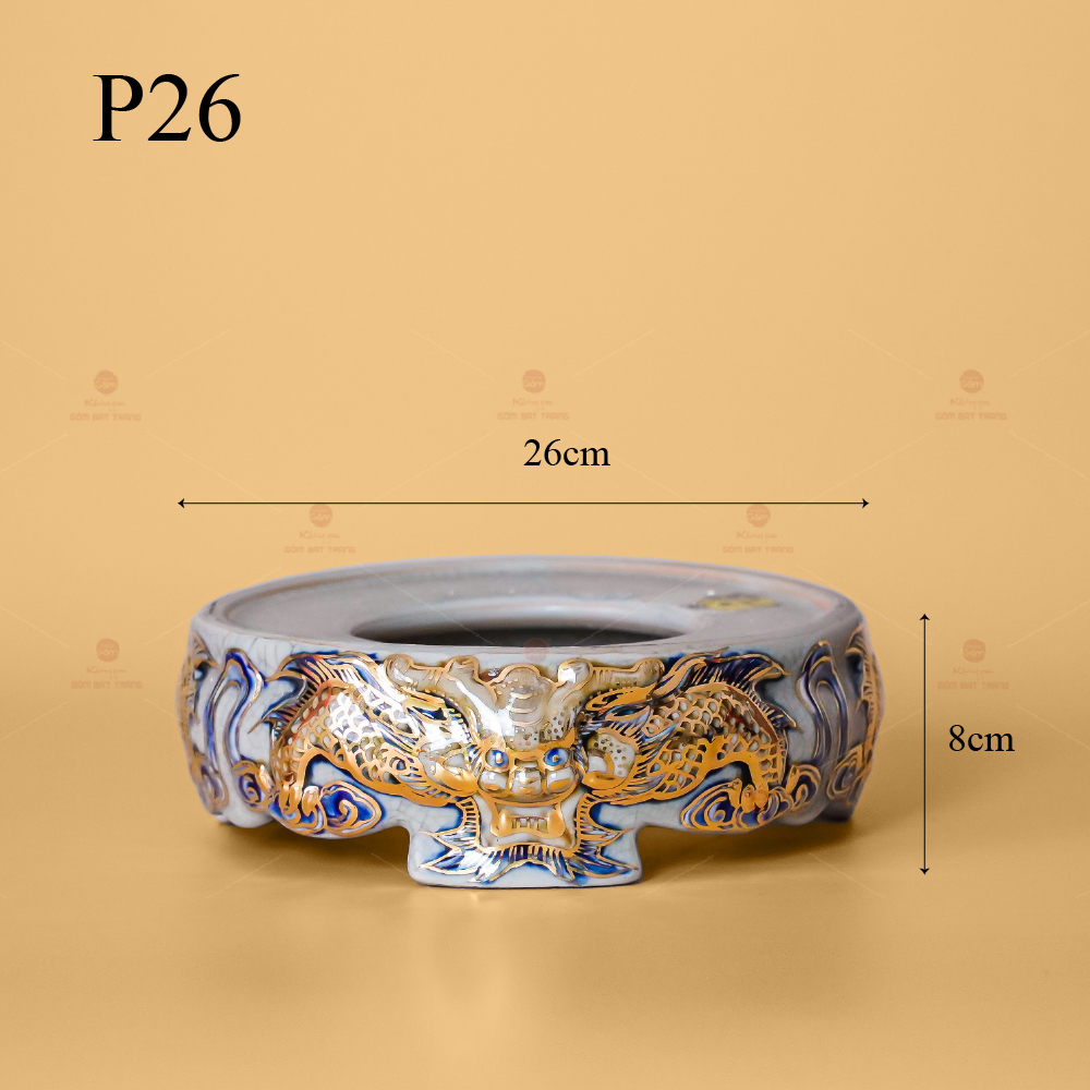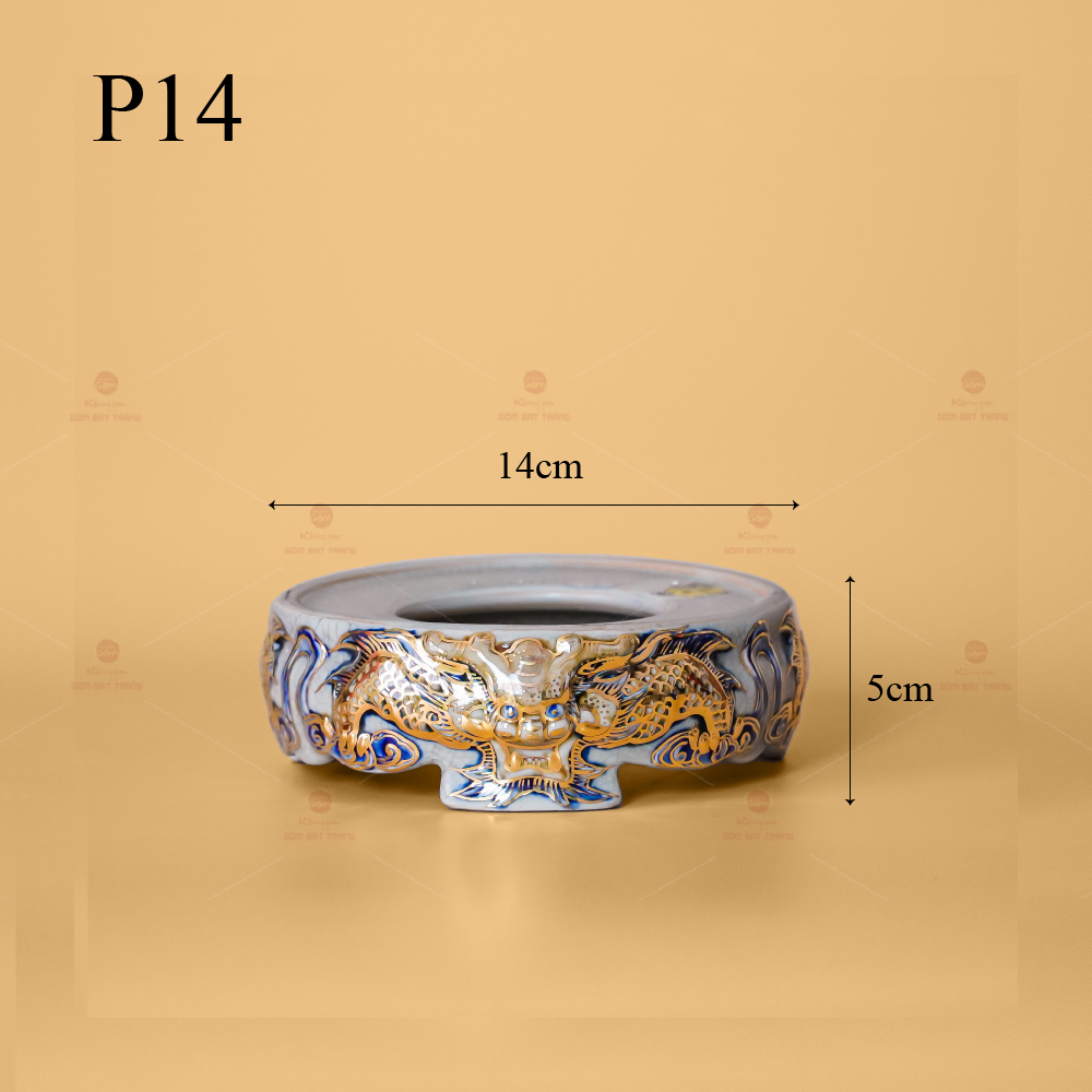 - Tên sản phẩm: Đế Bát Hương Men Rạn Vẽ Vàng Họa Tiết Kim Long Đẳng Vân