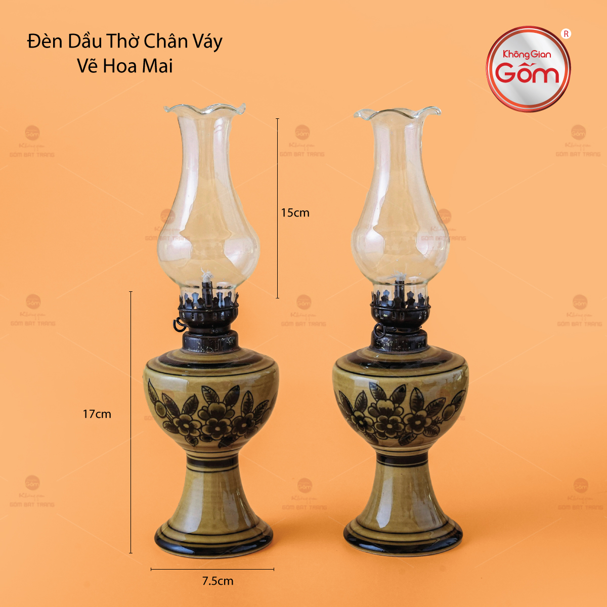 - Tên sản phẩm: Đèn Dầu Thờ Chân Váy Vẽ Hoa Mai
