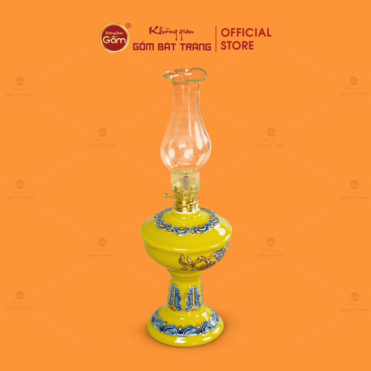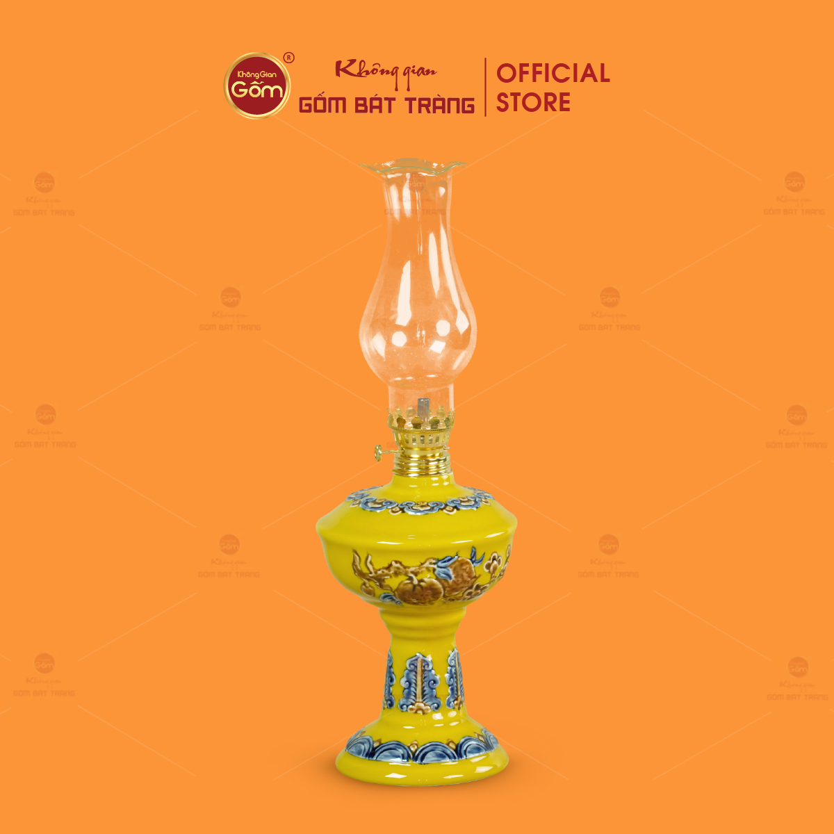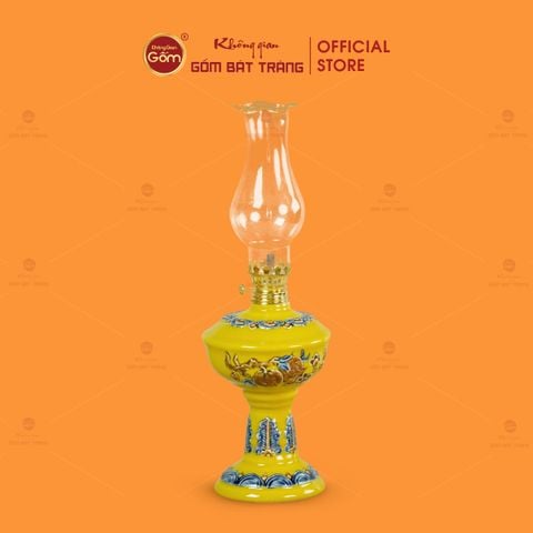 Sản phẩm được chế tác thủ công từ gốm sứ Bát Tràng, trải qua quá trình tạo hình, vẽ họa tiết và nung ở nhiệt độ cao, giúp xương gốm chắc, độ bền cao và ổn định trong quá trình sử dụng lâu dài. Đèn có kết cấu gồm chân đế vững chắc, thân đèn tròn đầy và ống chụp thủy tinh trong suốt, bảo đảm ánh sáng lan tỏa đều và an toàn khi thắp.