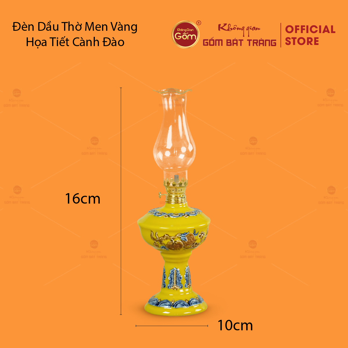 - Tên sản phẩm: Đèn Dầu Thờ Men Vàng Họa Tiết Cành Đào