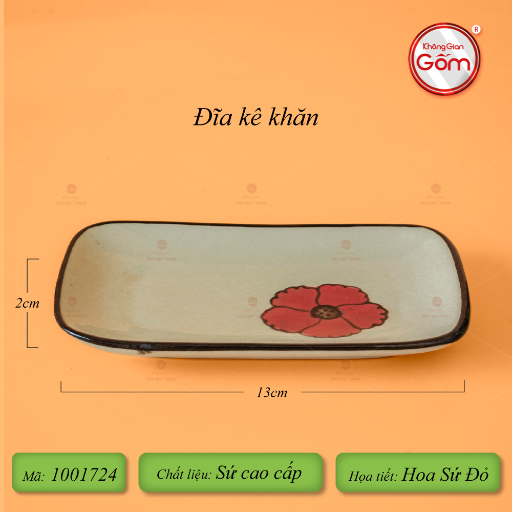 - Tên sản phẩm: Đĩa Kê Khăn Hoa Sứ Đỏ