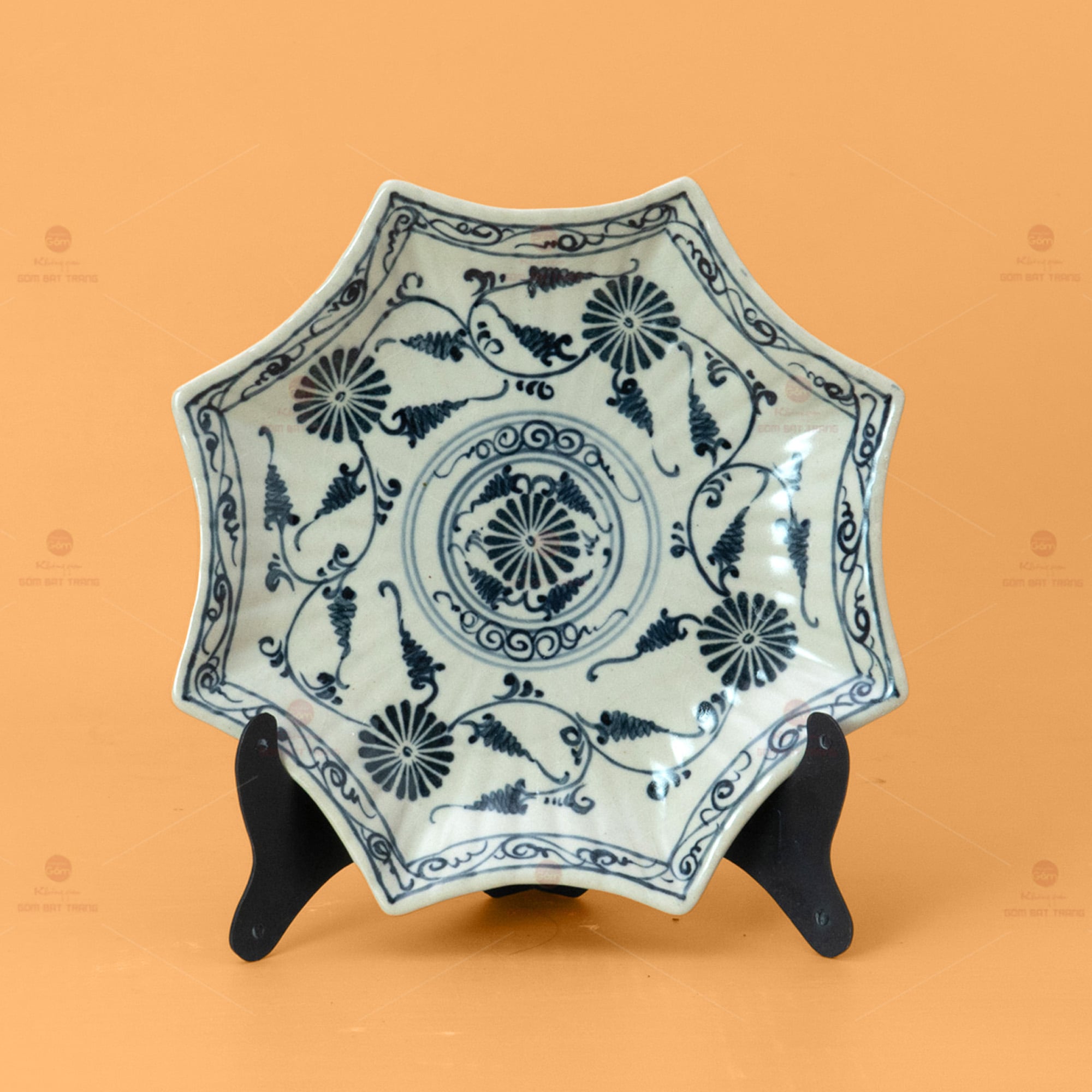 - Tên sản phẩm: Đĩa Sao Men Rạn Vẽ Cúc Đen