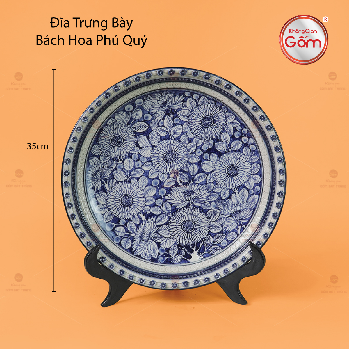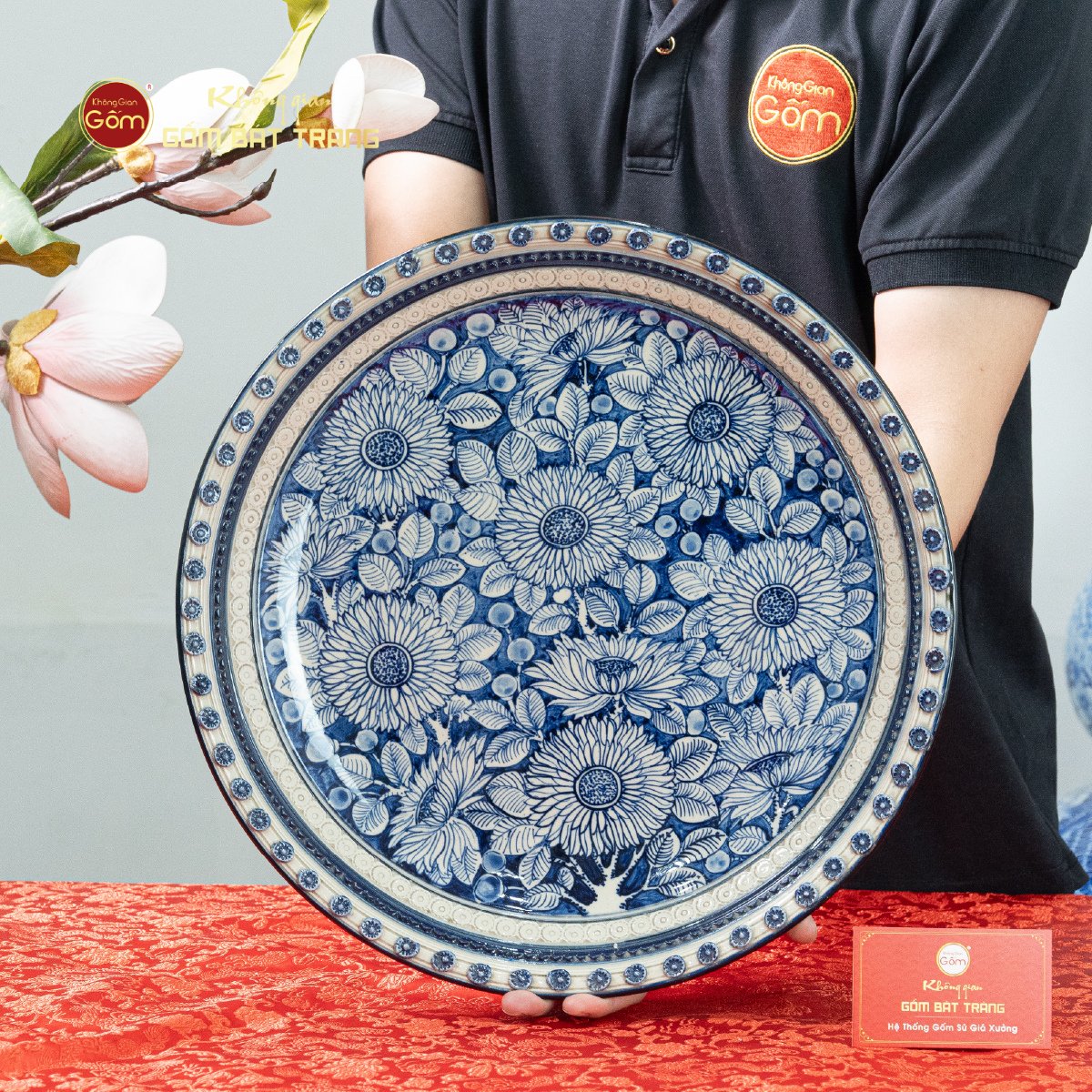 Đường kính 35cm giúp đĩa vừa vặn để làm trung tâm trưng bày, lại đủ diện tích để họa tiết lan tỏa như một khúc hoan ca mùa xuân, đưa cảm giác thư giãn, dễ chịu len vào từng góc nhỏ của ngôi nhà.