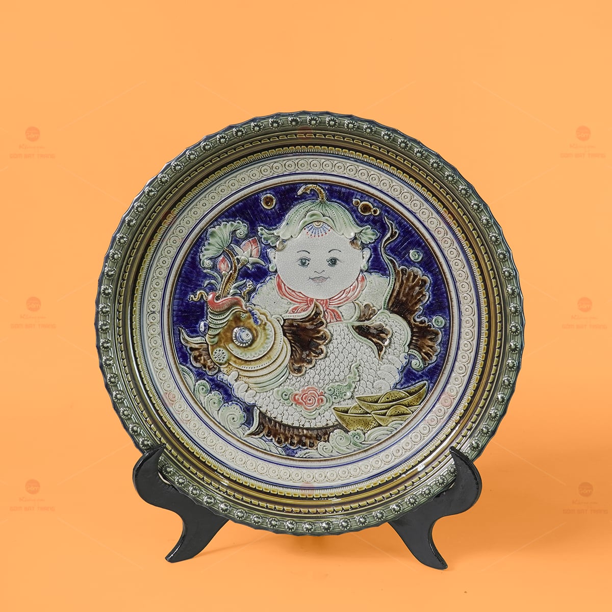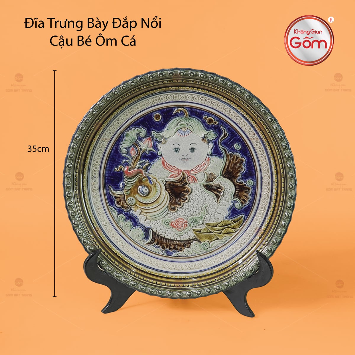 - Tên sản phẩm: Đĩa Trưng Bày Đắp Nổi Cậu Bé Ôm Cá
