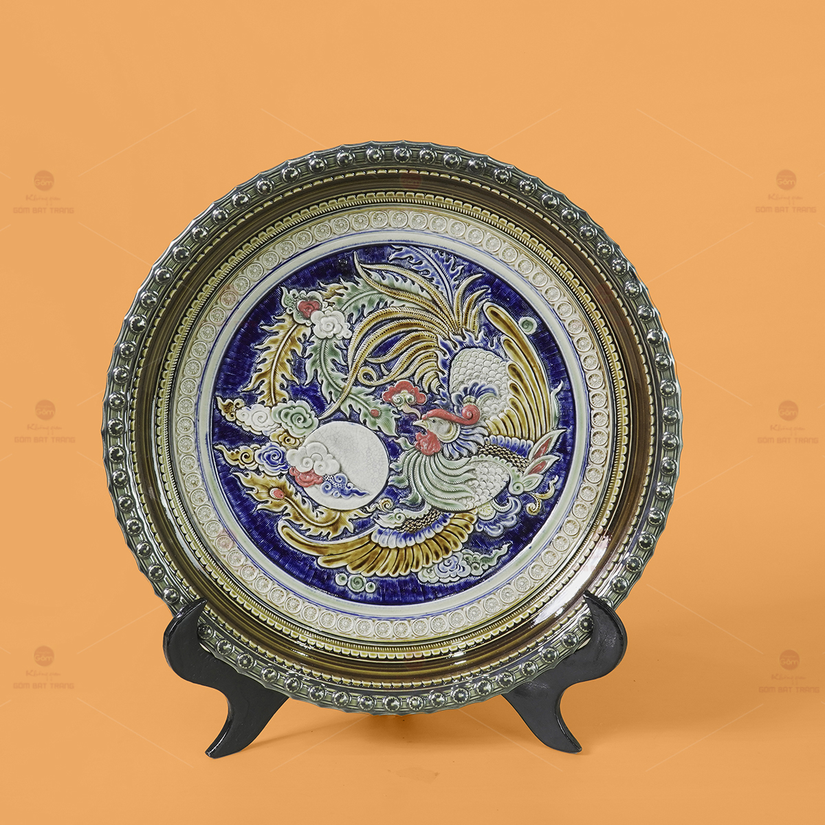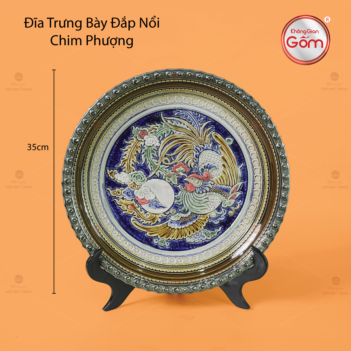 - Tên sản phẩm: Đĩa Trưng Bày Đắp Nổi Chim Phượng