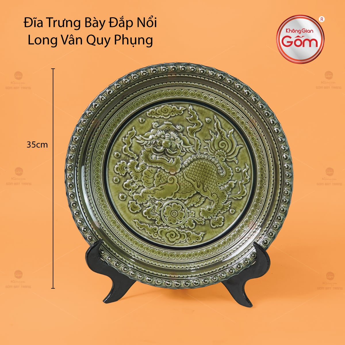 - Tên sản phẩm: Đĩa Trưng Bày Đắp Nổi Long Vân Quy Phụng