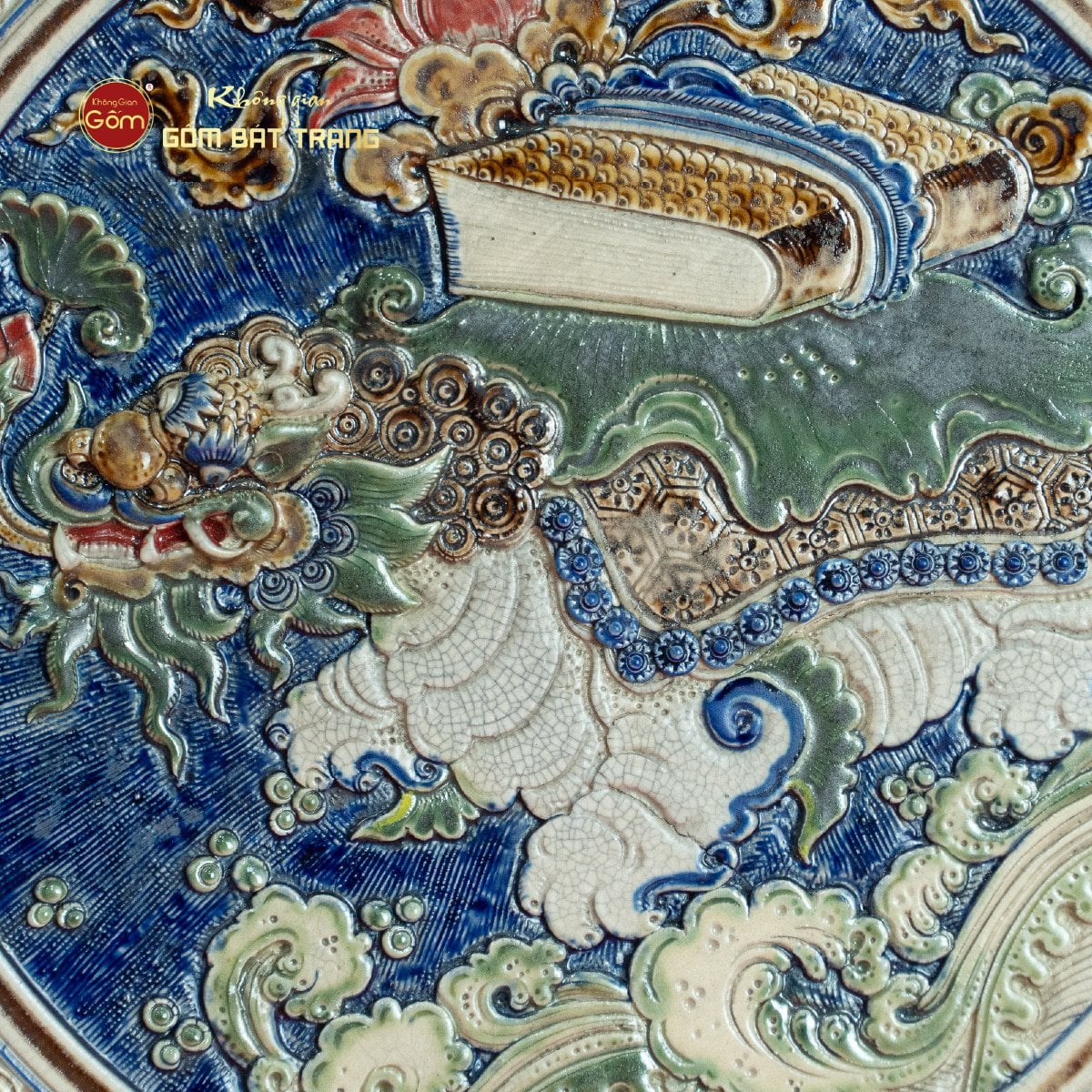Sản phẩm với độ hoàn thiện cao, sắc nét và rõ ràng trong từng chi tiết cho thấy sự khéo léo của người thợ gốm làng Bát Tràng. Mỗi họa tiết dù là nhỏ nhất như đôi mắt của lân, đôi mắt thể hiện thần thái uy mãnh, mưu trí và sự tinh tường. Nếu quý khách hàng yêu gốm đang tìm một món quà, vật thưởng hay đồ lưu niệm lâu dài để lưu giữ một cột mộc hay sự kiện đáng nhớ, đừng bỏ qua sản phẩm Đĩa khắc nổi vẽ màu kỳ lân chở sách.