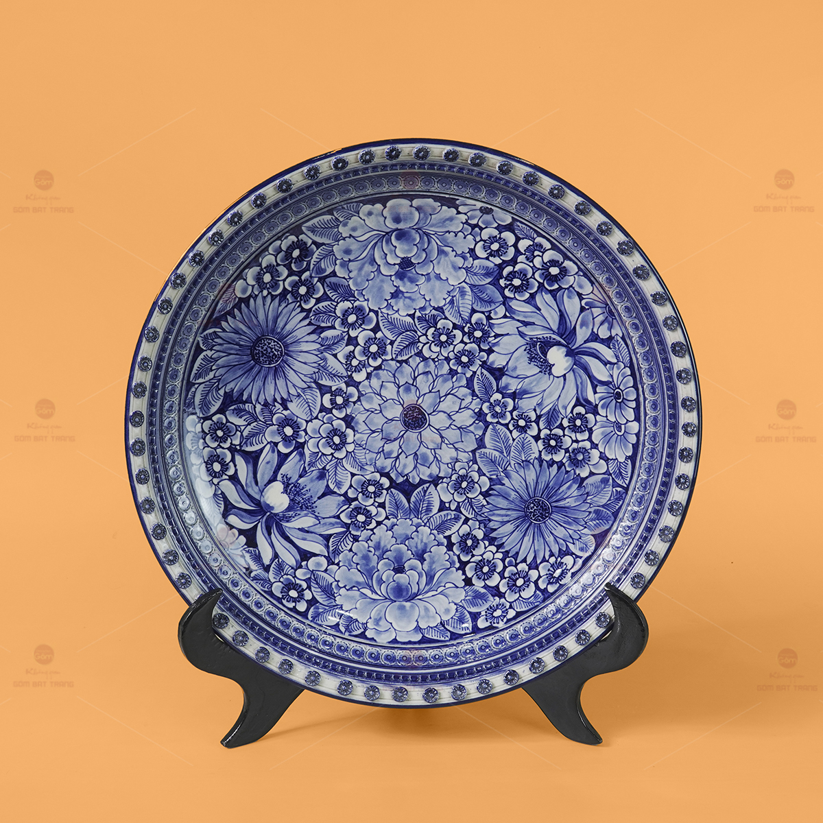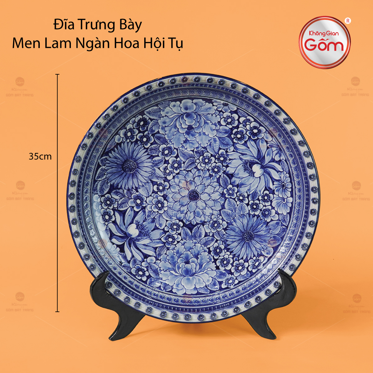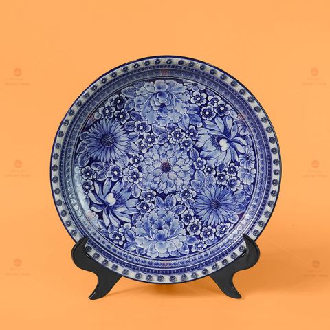 - Tên sản phẩm: Đĩa Trưng Bày Men Lam Ngàn Hoa Hội Tụ