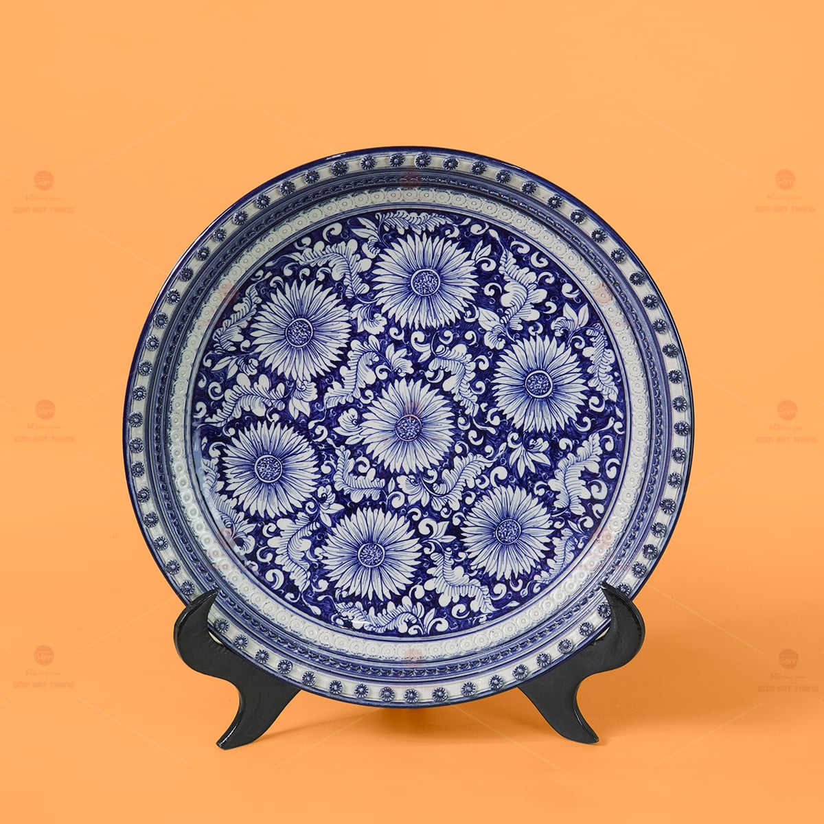 Không đơn thuần là vật phẩm mỹ nghệ, chiếc đĩa còn được chế tác với kết cấu bền vững. Phần cốt gốm dày dặn, nung ở nhiệt độ cao, cho độ cứng lý tưởng và khả năng chịu lực tốt. Sản phẩm đi kèm đế kê gỗ tự nhiên ba chân, bản lề chắc chắn – thích hợp để trưng bày trong không gian sống như phòng khách, bàn thờ, hay phòng làm việc; đồng thời cũng là điểm nhấn đắt giá trong đại sảnh, showroom, hoặc làm quà biếu tặng trang trọng.