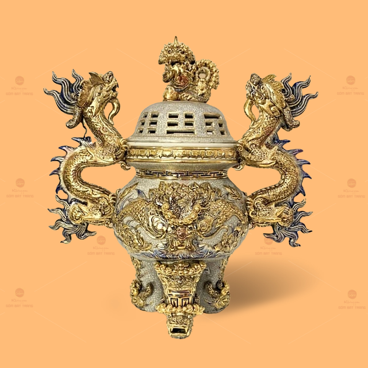 Đỉnh Hương Thờ Cúng Men Rạn Vẽ Vàng