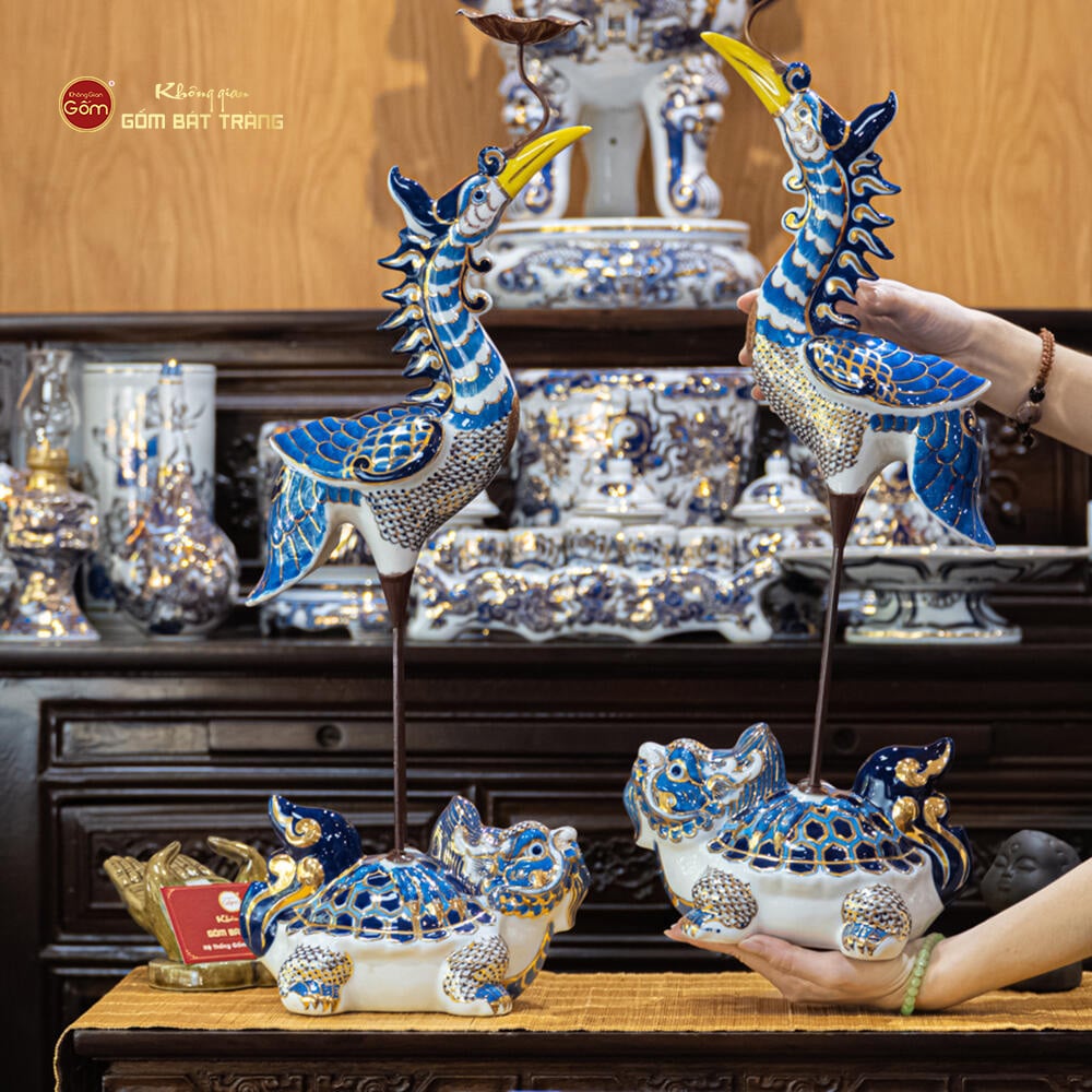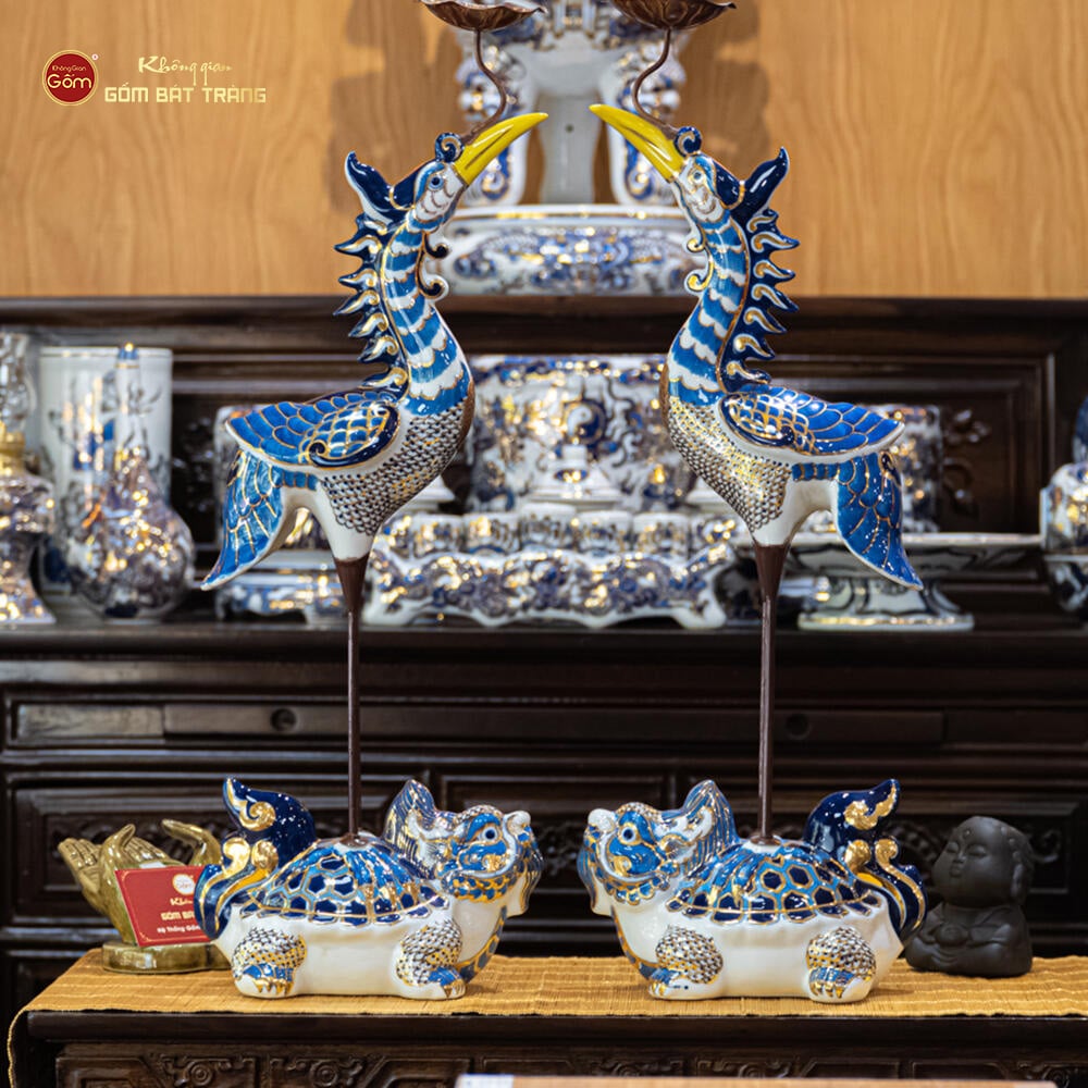 - Tên sản phẩm: Hạc Thờ Men Lam Vẽ Vàng