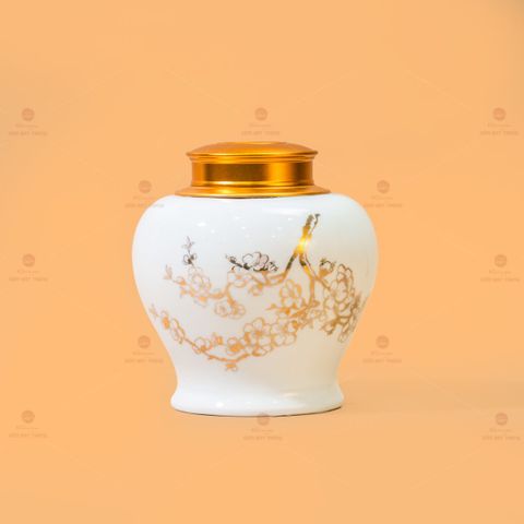 Hũ Đựng Trà Men Trắng Họa Tiết Hoa Mai Vẽ Vàng