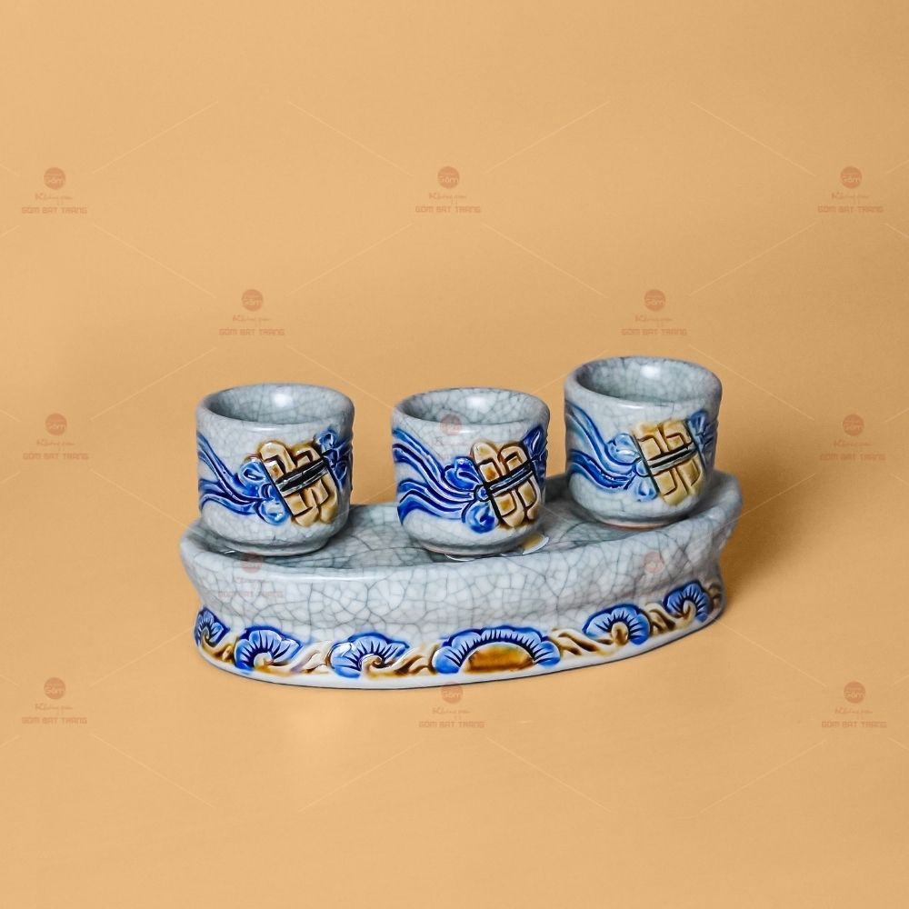 Kỷ 3 Chén Thờ Men Rạn Nổi Họa Tiết Cuốn Thư