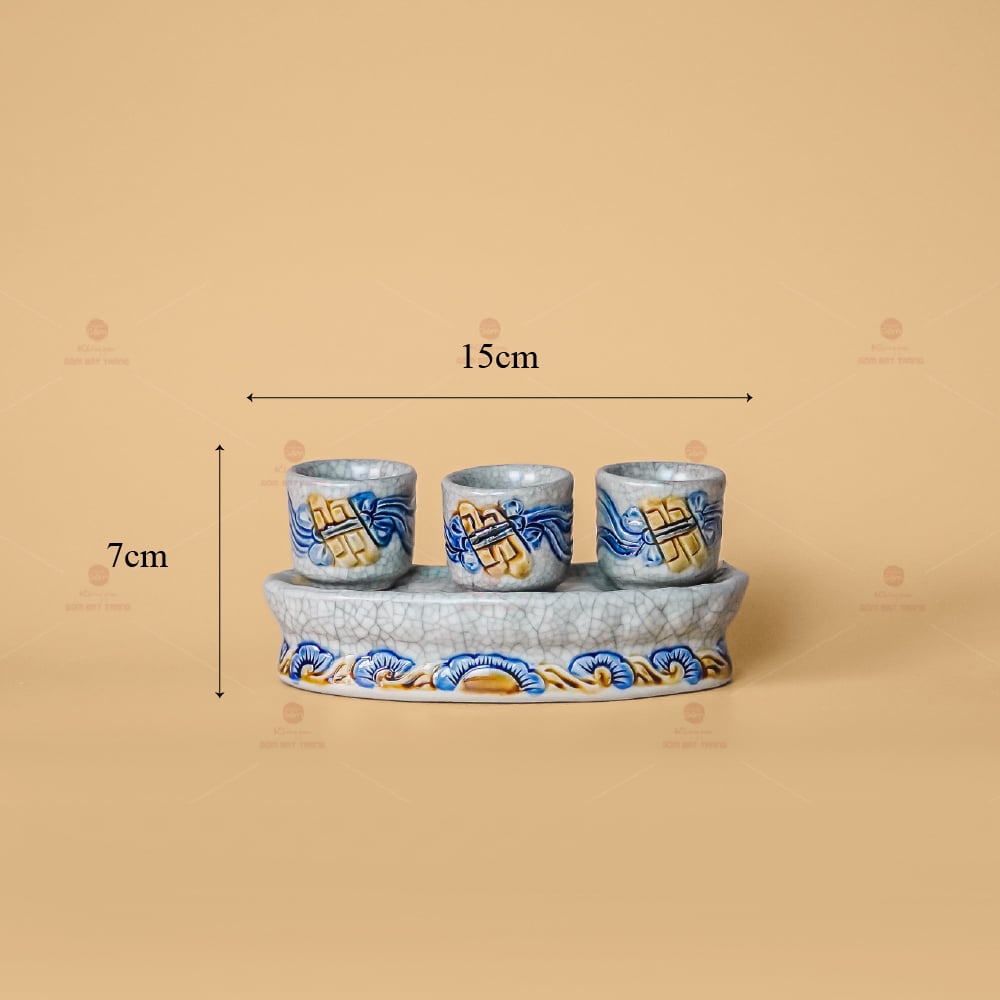 - Tên sản phẩm: Kỷ 3 Chén Thờ Men Rạn Nổi Họa Tiết Cuốn Thư