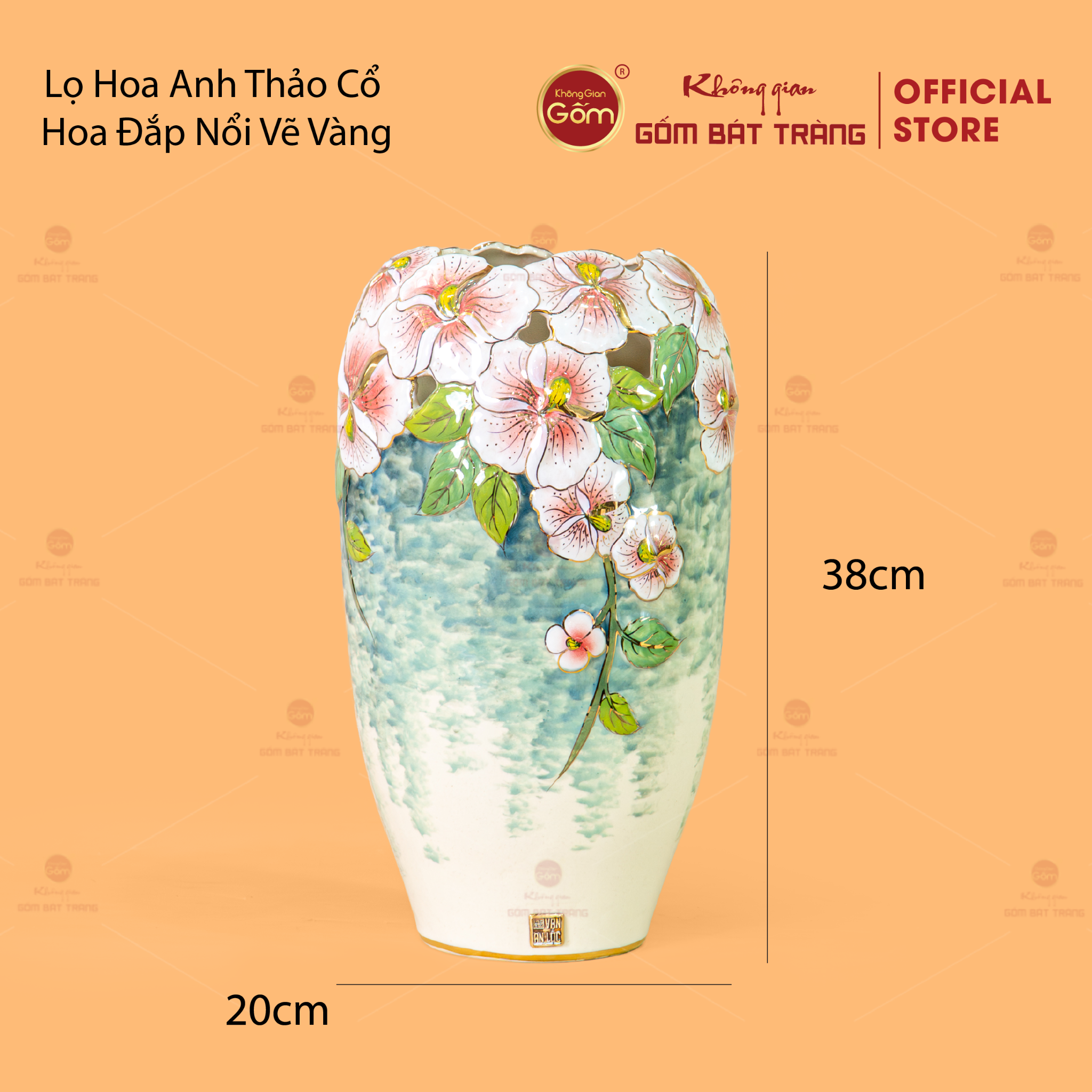 - Tên sản phẩm: Lọ Hoa Anh Thảo Cổ Hoa Đắp Nổi Vẽ Vàng