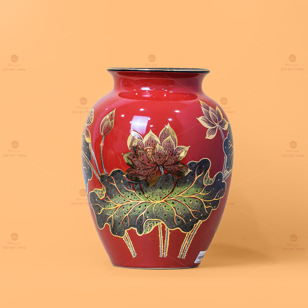 Địa chỉ mua Lọ Hoa Cổ Cao Men Đỏ Hoa Sen Vẽ Vàng uy tín tại Tp.HCM