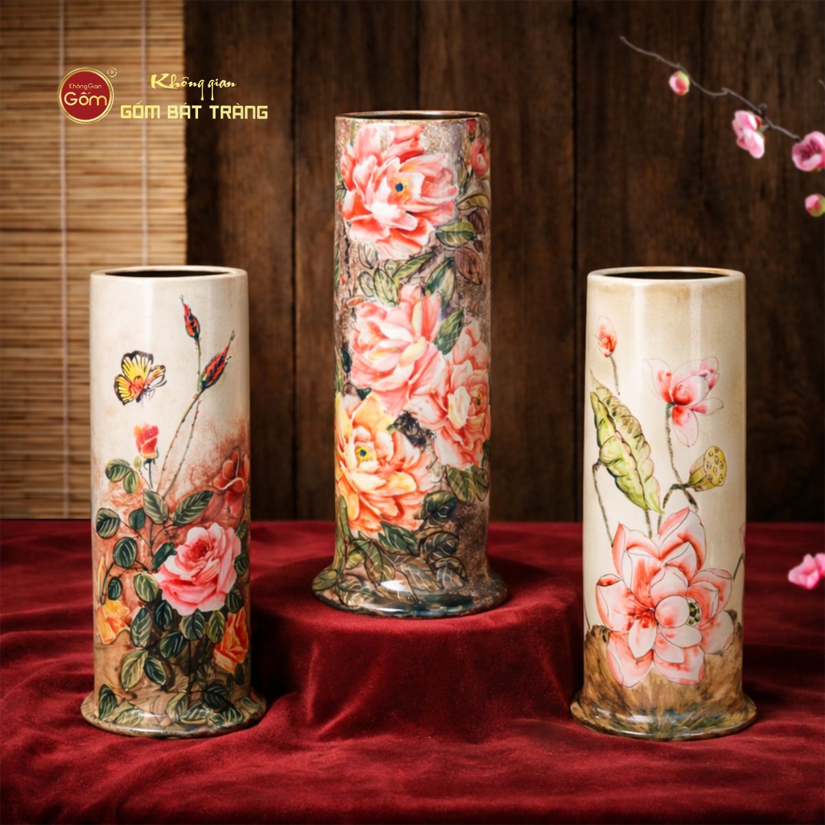 Địa chỉ mua lọ hoa dáng ống vẽ hoa gốm Bát Tràng tại TP.HCM