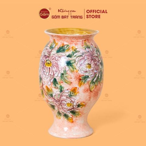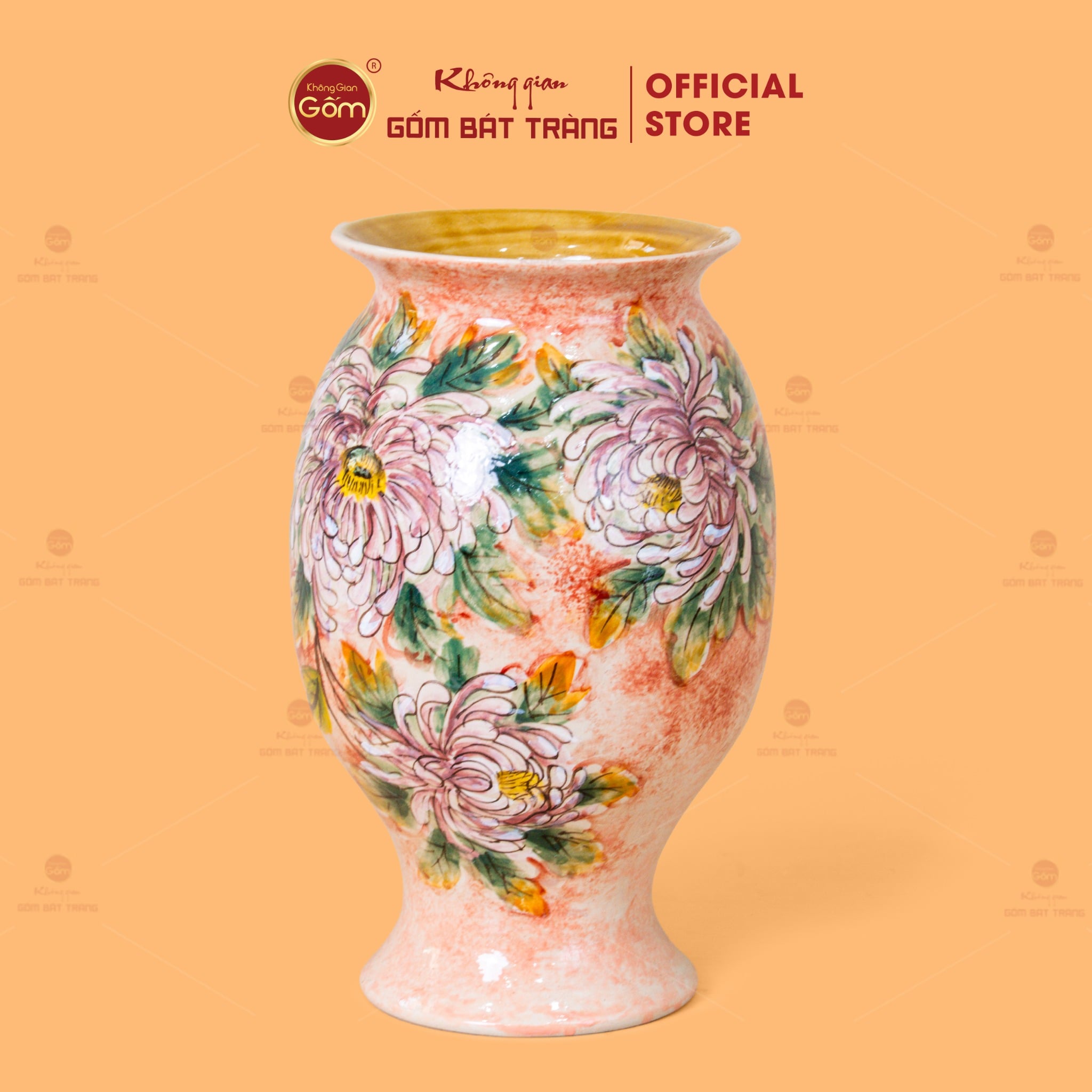 Lọ hoa miệng loe dáng bầu vẽ hoa không chỉ là sản phẩm trang trí mà còn là biểu tượng của nghệ thuật gốm Bát Tràng. Sự kết hợp giữa hình dáng mềm mại và họa tiết hoa vẽ tay tinh xảo giúp sản phẩm phù hợp với nhiều mục đích sử dụng như trang trí nội thất, quà tặng decor, quà tân gia hoặc quà doanh nghiệp.