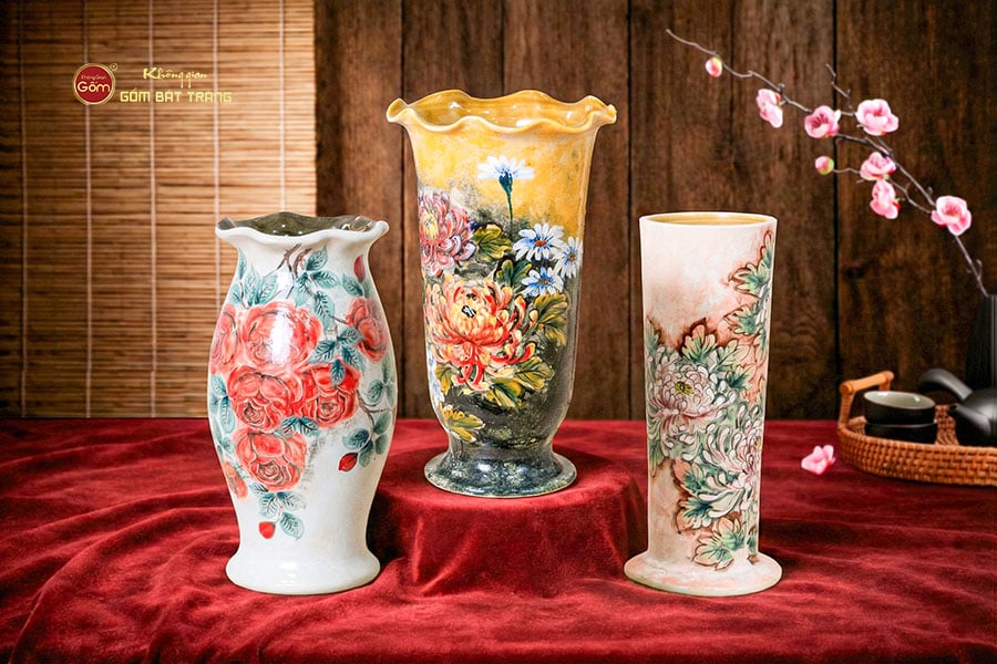 Lọ hoa dáng cúp vẽ hoa có thể kết hợp với lọ hoa dáng ống, bình gốm decor, đĩa sứ trang trí hoặc tượng gốm để tạo thành một bộ sưu tập gốm trang trí đồng bộ. Cách phối hợp này đặc biệt phù hợp với không gian mang phong cách nghệ thuật hoặc bán cổ điển. Nếu quý khách đang tìm kiếm lọ hoa miệng lượn dáng cúp vẽ hoa gốm Bát Tràng chất lượng cao, Không Gian Gốm Bát Tràng là địa chỉ uy tín dành cho khách hàng yêu thích gốm trang trí nghệ thuật.